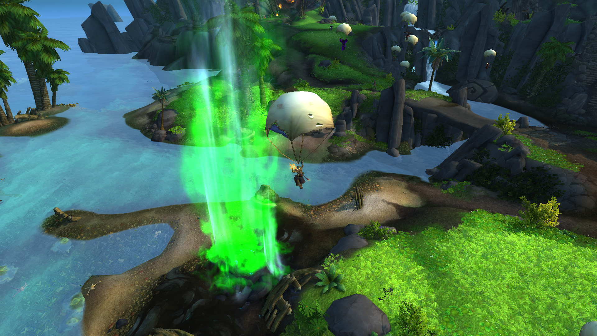 Nathanos le flétrisseur vous briefent sur votre mission sur la flotte aérienne de l'Alliance et la Horde pendant les préparatifs. La principale nouveauté de ce champ de bataille est que vous intervenez grâce à un parachute de fusée : vous aurez 4 charges de propulsion si vous souhaitez prendre davantage de distance supplémentaire lors de votre saut. Les navires aériens survolent le champ de bataille et feront office de vous ressusciter avant de repartir à l'assaut.