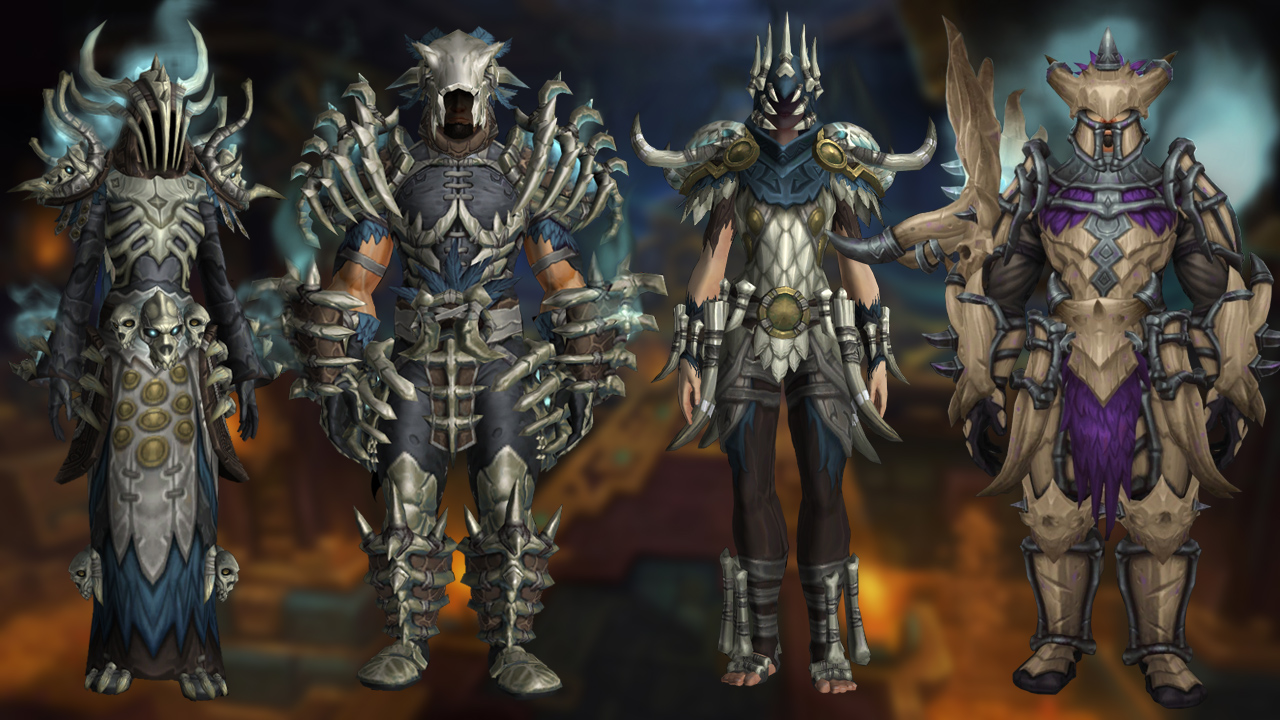 La Bataille de Dazar'alor est le raid principal de la mise à jour 8.1 de Battle for Azeroth avec deux versions pour chacune des factions. Ce nouveau raid permet également de constituer un ensemble d'armure cosmétique de chaque type d'armure décliné en plusieurs coloris différents selon le mode de difficulté. Hormis les caractéristiques prodigués, ces ensembles d'armure sont thématiques avec l'environnement et l'histoire du nouveau raid avec Bwonsamdi, un personnage principal de l'intrigue du raid. Vous pouvez découvrir l'aperçu de ces nouveaux set d'armure avec les variations de coloris.