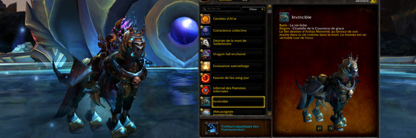 L'interface de collection de montures est améliorée dans la mise à jour 8.2 : l'avènement d'Azshara par une nouvelle fonctionnalité : les équipements de monture. Un emplacement est disponible en-dessous de la liste des montures collectionnées pour placer un objet spécial avec la mention « Équipement de monte ». Cet objet permet ainsi de bénéficier de divers bonus intéressants à la monture invoquée comme pour marcher sur l'eau, augmenter la vitesse de déplacement, empêcher de se retrouver hébéter ou même ralentir votre chute par un parachute qui se déploie si vous êtes désarçonnés. Vous pouvez retrouver toutes les informations sur son fonctionnement ainsi que la liste des équipements de monture disponibles avec la prochaine mise à jour.