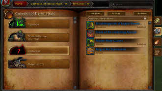 Un nouveau donjon composé de 4 boss (Agronox, Thrashbite, Domatrax et Mephistroth) en mode normal, héroïque et mythique sera disponible pour accéder à la Cathédrale de la nuit éternelle. Le raid de la Tombe de Sargeras vous fera descendre dans la tombe tandis que ce donjon vous emmènera au sommet de la flèche puisque l’Égide d’Aggramar sera la clé pour ouvrir la voie.