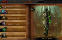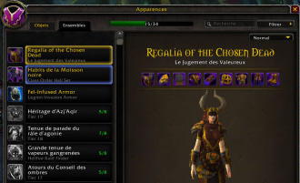 L'interface des apparences de Legion est améliorée pour cette mise à jour 7.2 puisqu'il dissocie désormais tous les ensembles d'armures JcJ et JcE relatifs à la classe avec un filtre pour trier la difficulté de chacune des pièces (non)obtenues. De nouveaux hauts-faits seront également disponibles pour collectionner des apparences d'ensemble d'armure. Ce nouvel onglet est disponible directement dans les apparences pour recenser les ensembles d'armures avec un champ de recherche et d'une progression générale :