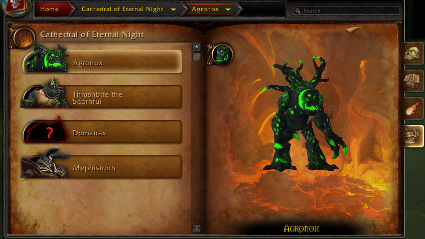Un nouveau donjon composé de 4 boss (Agronox, Thrashbite, Domatrax et Mephistroth) en mode normal, héroïque et mythique sera disponible pour accéder à la Cathédrale de la nuit éternelle. Le raid de la Tombe de Sargeras vous fera descendre dans la tombe tandis que ce donjon vous emmènera au sommet de la flèche puisque l’Égide d’Aggramar sera la clé pour ouvrir la voie.