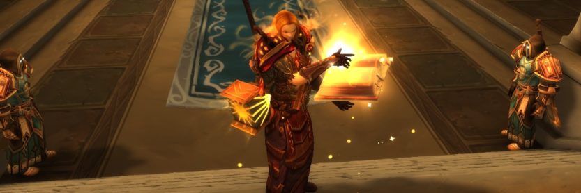Hello Falkir, oui tu as raison, certaines des animations n’ont pas été implémentées avec la sortie de la mise à jour 8.1 pour des raisons inconnues. Ils ont fait la même chose sur la bêta avec l’animation du libram puis repoussé au patch 8.1, on peut avoir une consécration repoussée plus tard malheureusement (certainement que les feedback montraient que c’était trop prononcé au corps à corps