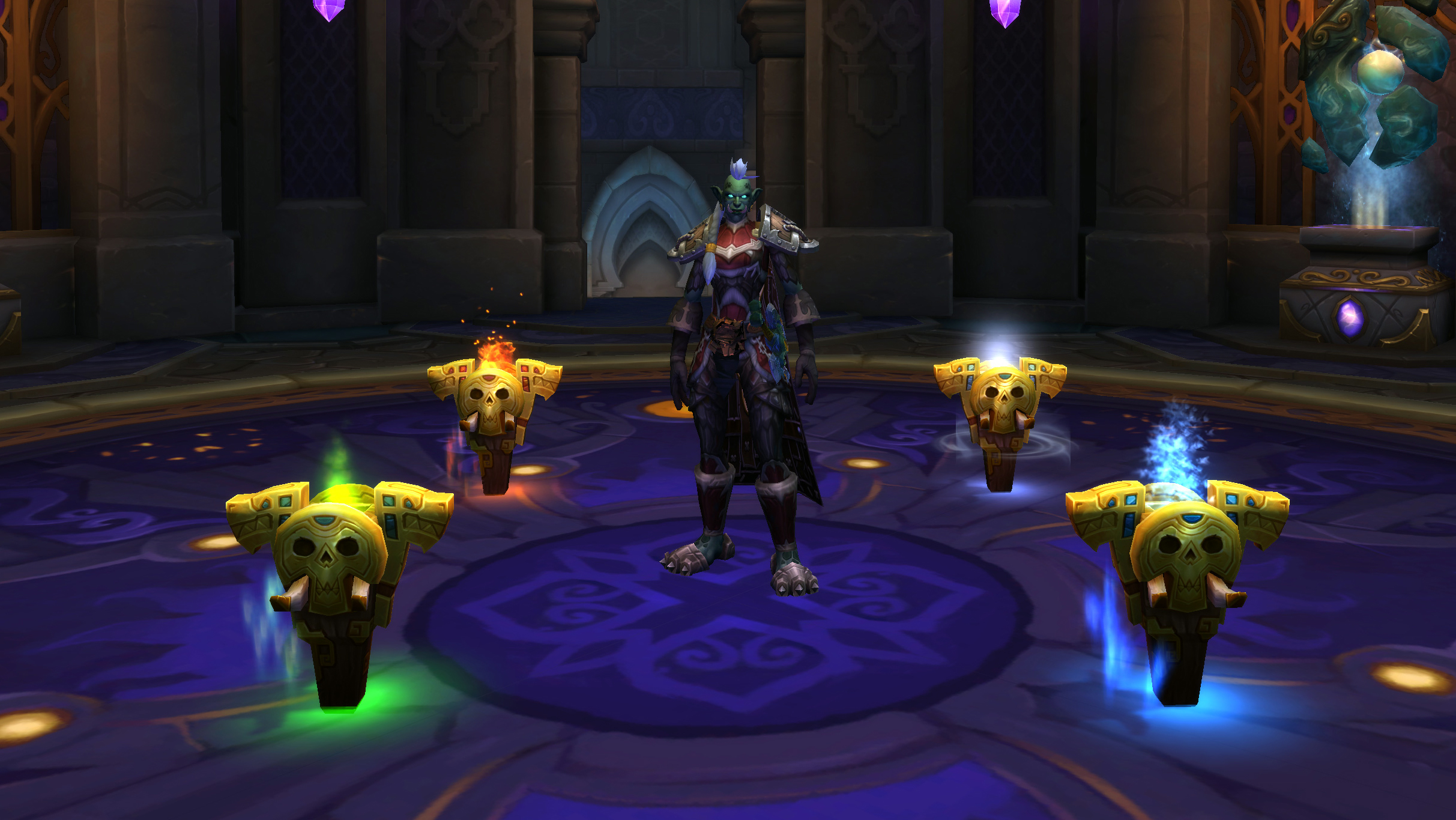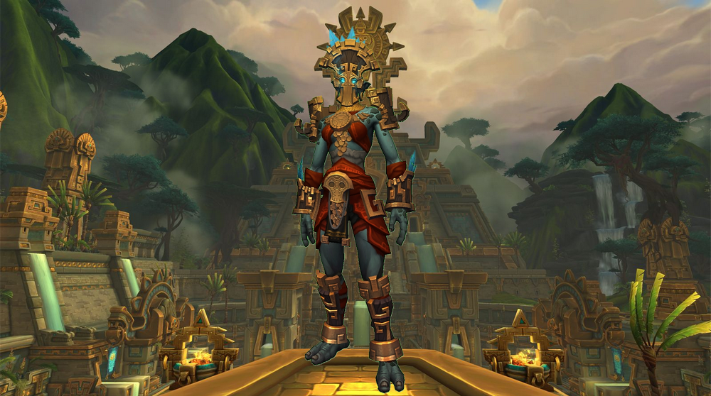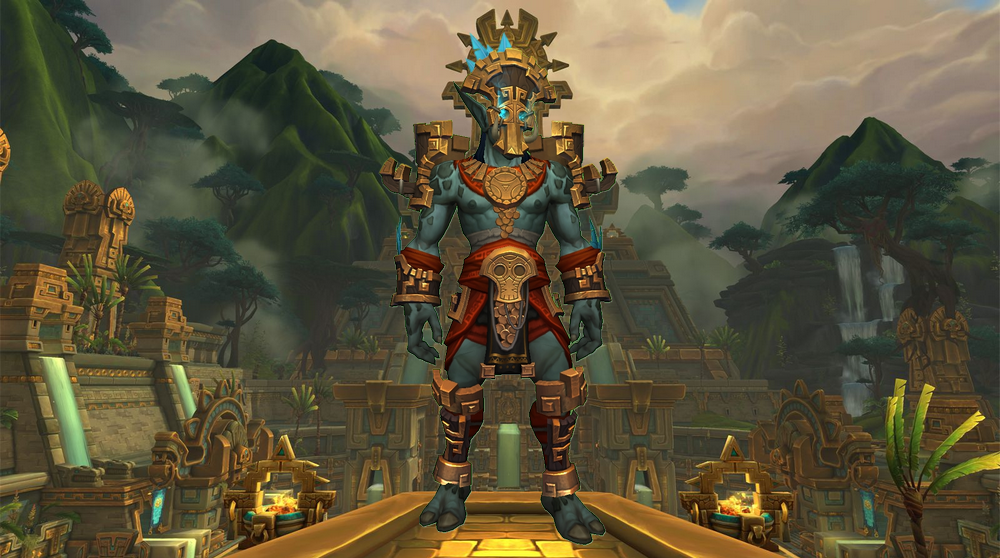 Ci-dessous, il s’agit de l’armure ancestrale classique des trolls zandalari avec les pièces d'apparence cosmétiques :