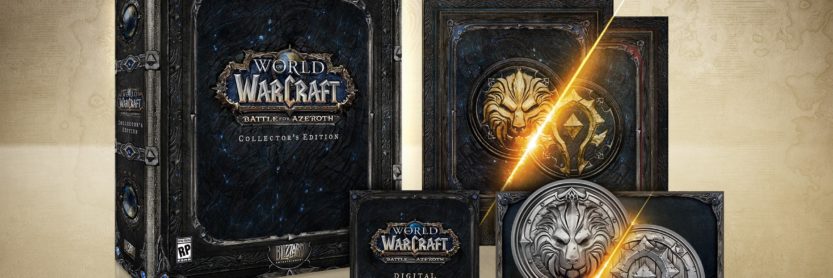 Avec l’annonce officielle de la date de sortie de Battle for Azeroth prévu le 14 août 2018, Blizzard révèle le contenu physique de l’édition collector qui contient plusieurs éléments intéressants. On peut notamment retrouver 2 romans inédits avec Élégie de point de vue de l’Alliance, et une guerre honorable de point de vue de la Horde avec des illustrations exclusives. Cette boîte contient également une marque d’allégeance à votre faction, des somptueuses compositions orchestrales, ainsi que les bonus en jeu de la version deluxe. Vous pourrez retrouver cette version à 99,99€ sur les sites de revendeurs.