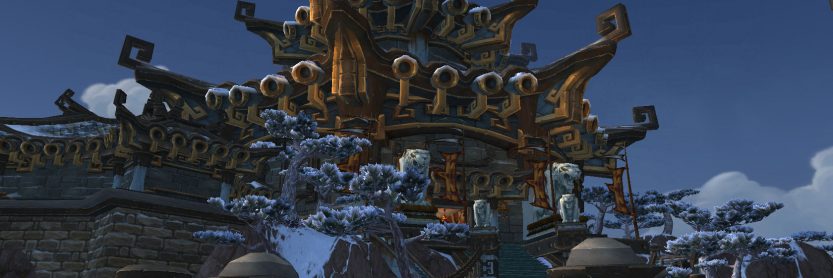Et si je dois me cantonner à seulement trois endroits, alors j’imagine que je ne peux pas omettre le monastère des Pandashan. C’est le quartier général de la seule et unique ligne de défense de la Pandarie, les Pandashan. Le dernier empereur leur a confié un devoir sacré : défendre les terres de l’énergie ténébreuse des sha. C’est aussi eux qui montent la garde sur la muraille de l’Échine du Serpent et protègent le peuple des terrifiants mantides. Il y a beaucoup qui pèse sur leurs épaules, et comme vous pouvez l’imaginer, leur monastère est à la fois une forteresse et un lieu de profond recueillement. Il est perché sur les hauteurs des montagnes, absolument magnifique. Les Pandashan auront besoin de votre aide quand leur monastère sera envahi par les sha. Vous pourrez sans doute marquer quelques points auprès de leur faction si vous pénétrez dans le donjon pour leur prêter main forte.