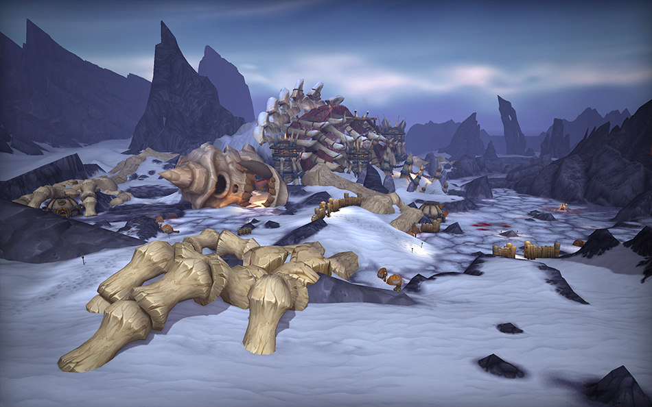 J’aime aussi beaucoup Wor’gol, car j’ai toujours voulu mieux comprendre d’où venaient les Loups-de-Givre. Ce village montre très bien l’austérité de leur vie dans l’un des territoires les plus hostiles de Draenor. J’aime contempler Wor’gol comme le ferait Thrall et voir la terre de ses ancêtres comme il la verrait.