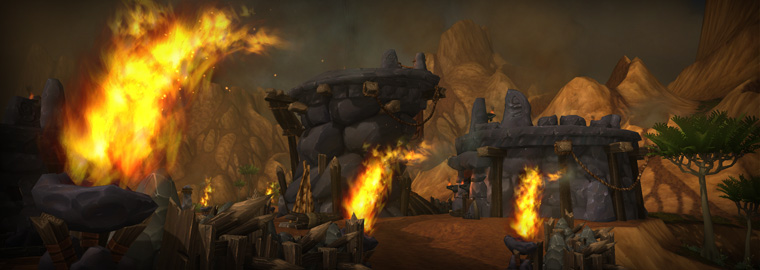Les personnages-joueurs de la Horde arriveront par l’ouest, ils vont croiser le chemin du clan du Crâne-Ricanant. Ces orcs hystériques sont imprévisibles et sanguinaires, pouvant faire preuve d’une extrême violence. Vous comprendrez votre douleur quand vous les verrez. Les orcs du Crâne-Ricanant luttent pour conserver leur territoire ancestral, ils sont soumis aux brutalités permanentes des factions en guerre dans la zone, c’est ce qui leur a forgé cette réputation de sauvages sanguinaires.