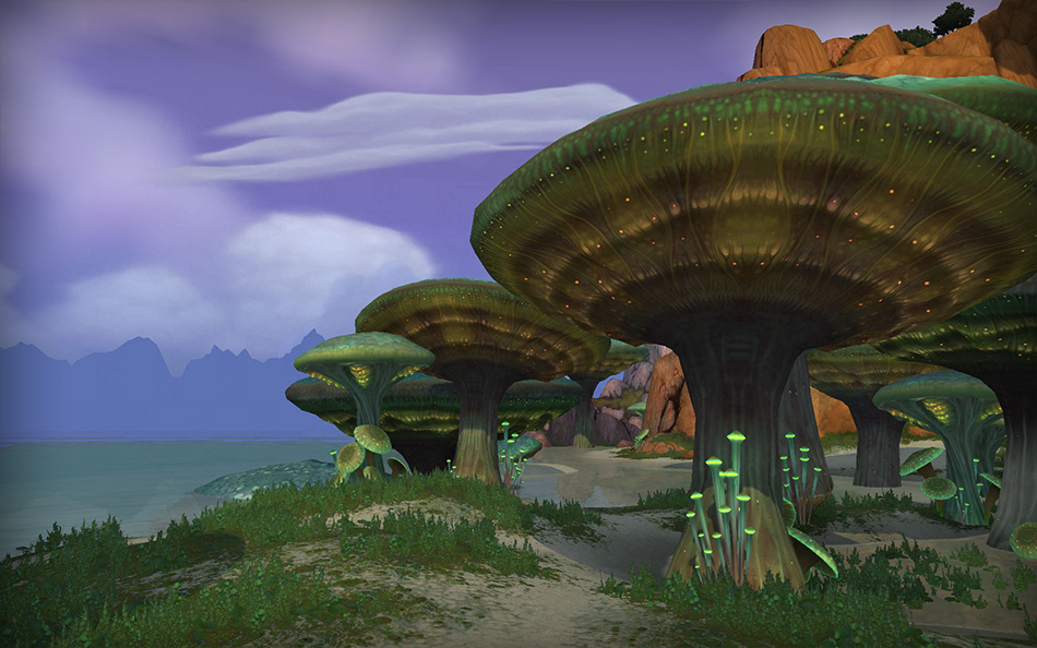 Kurt Sparkuhl : On se croirait vraiment dans l’ancien Nagrand. De toutes les zones, c’est celle qui devrait vous paraître la plus familière. En effet, Nagrand a été la région la moins touchée par les événements dramatiques qui ont transformé Draenor en Outreterre. On comprend rapidement que les îles flottantes du Nagrand de l’Outreterre proviennent des immenses ravins et pointes rocheuses qui se sont détachés après l’explosion qui a donné naissance à cette zone. Nous avons volontairement conservé de nombreuses facettes de cette zone tout en y ajoutant une nouvelle touche.