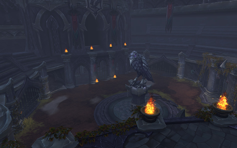Située dans le bastion du Freux, cette arène présente une grande statue au centre et trois alcôves latérales. L’accès à ces dernières est restreint par une série de portes, qui s’ouvrent et se ferment aléatoirement au cours de la partie. Quand elles sont fermées, vous pouvez les utiliser pour vous mettre en sécurité hors de vue de vos adversaires... Mais attention ! Elles peuvent se rouvrir à tout instant.