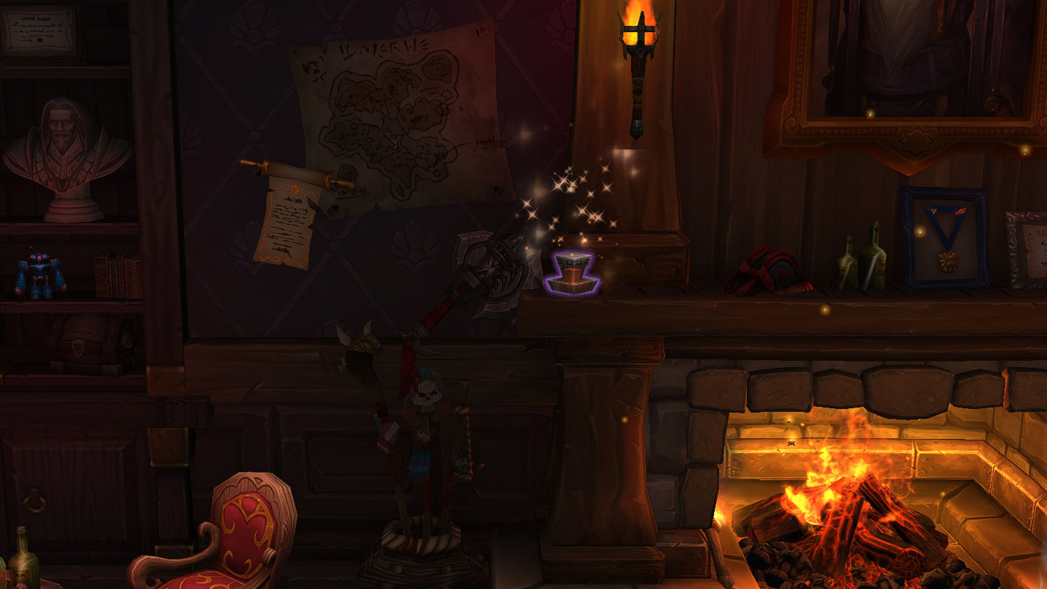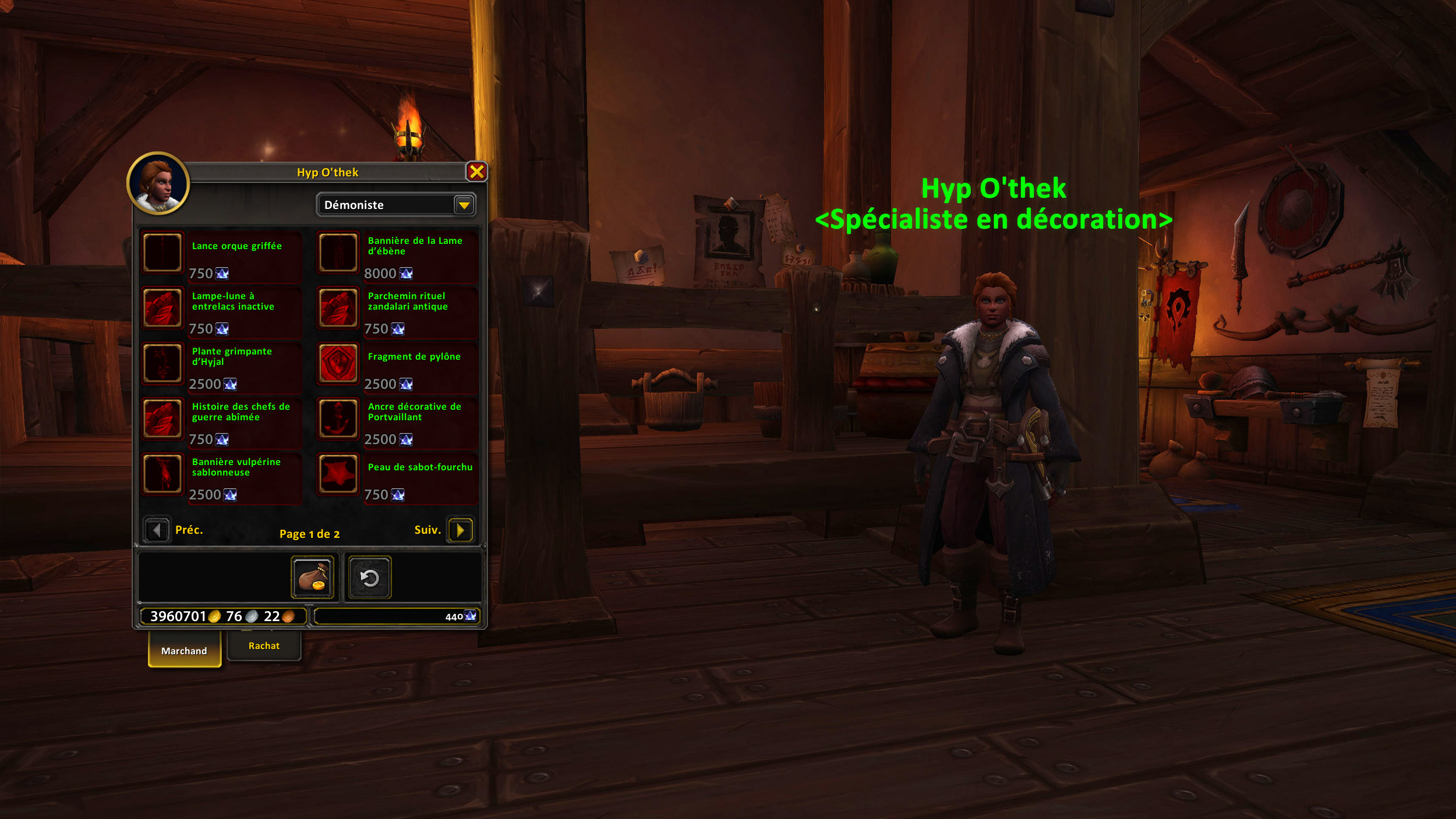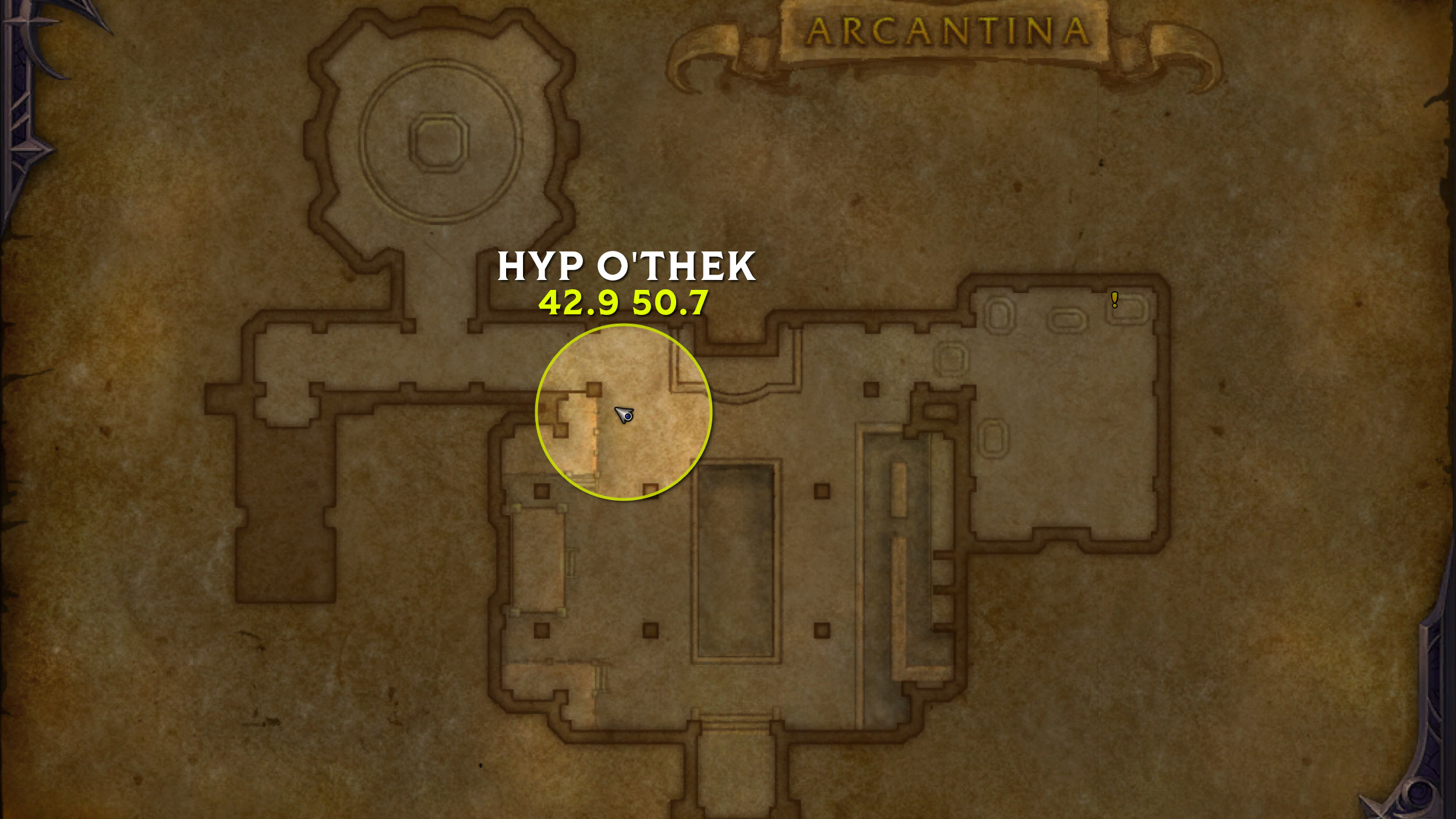 Hyp O'thek est l'intendant de l'Arcantina pour proposer jusqu'à 11 éléments de décoration pour décorer le foyer en Azeroth :