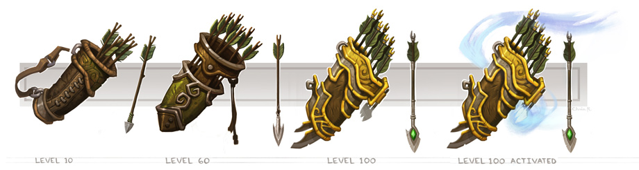 Bonjour, ici Chris Robinson, directeur artistique senior de World of Warcraft. Nous allons aborder dans cette nouvelle édition d’Artcraft un projet qui n’en est pour l’instant qu’au stade embryonnaire de son développement : les accessoires de classe. Voilà déjà un certain temps que nous pensons que nos classes de personnages manquent d’options de personnalisation de leur apparence et les joueurs semblent partager ce point de vue avec nous. Dans WoW, les chasseurs décochent des flèches qui semblent sortir de carquois invisibles. Les druides parlent avec passion d’objets mystiques qu’ils appellent idoles, les chamans évoquent de mystérieux totems et les librams semblent cruellement manquer à mon paladin.