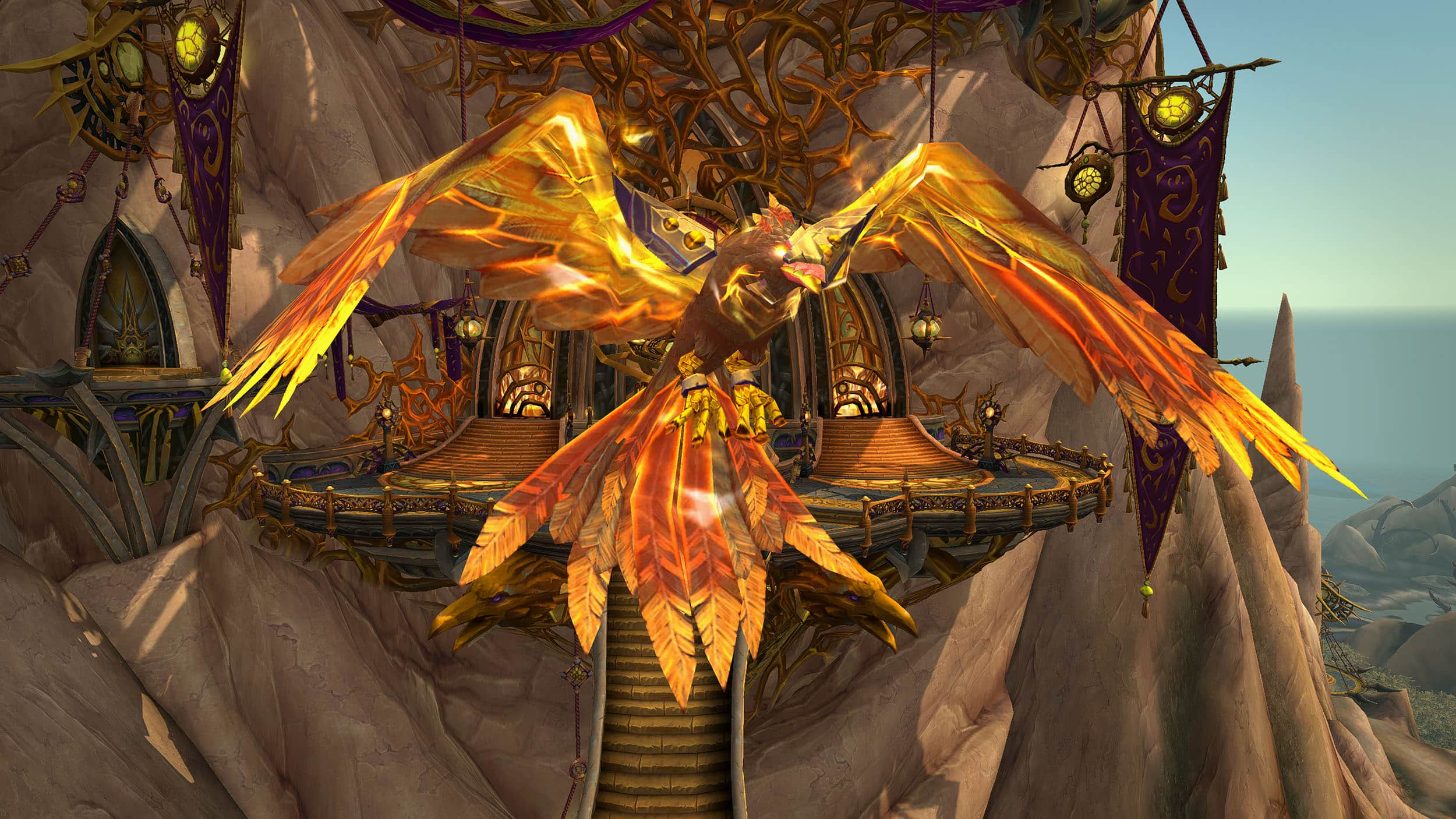 Faucon des flèches solaire : disponible sur Rukhmar aux alentours des flèches d'Arak en Draenor.