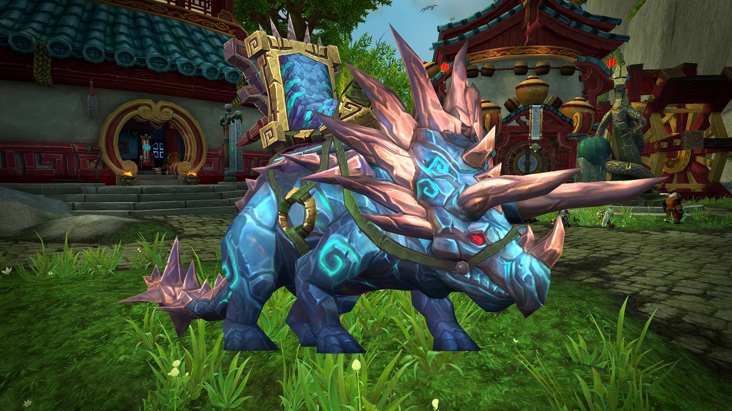 Rênes de navrecorne primordial cobalt : disponible sur Oondasta au sommet de l'île des Géants en Pandarie.