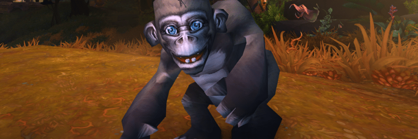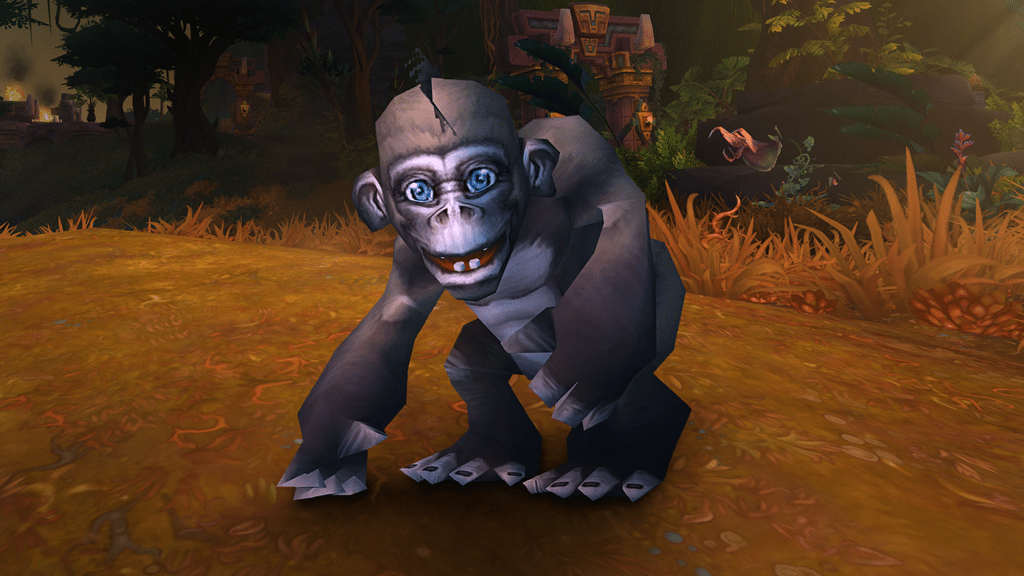 Né sur une île au large des côtes de la vallée de Strangleronce, le petit Bananas est le fils du roi Mukla, redoutable chef des Gorilles crins-de-ciel. Par chance, Bananas ne tient pas de son père, et sa nature bienveillante fait de lui un compagnon d’aventure idéal, qui illuminera vos journées en Azeroth et au-delà.