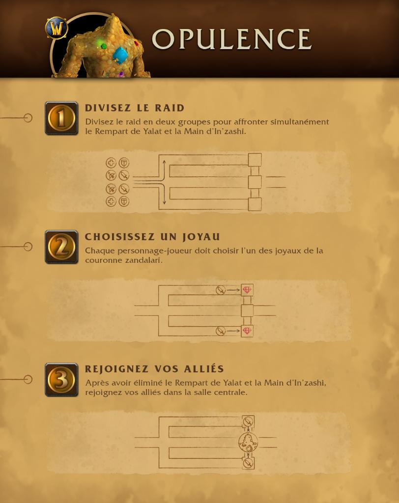 L’alliance continue son avancée vers le cœur de Dazar’alor où trois combats les attendent avant l’affrontement ultime dans la salle du trône du roi zandalari Rastakhan.