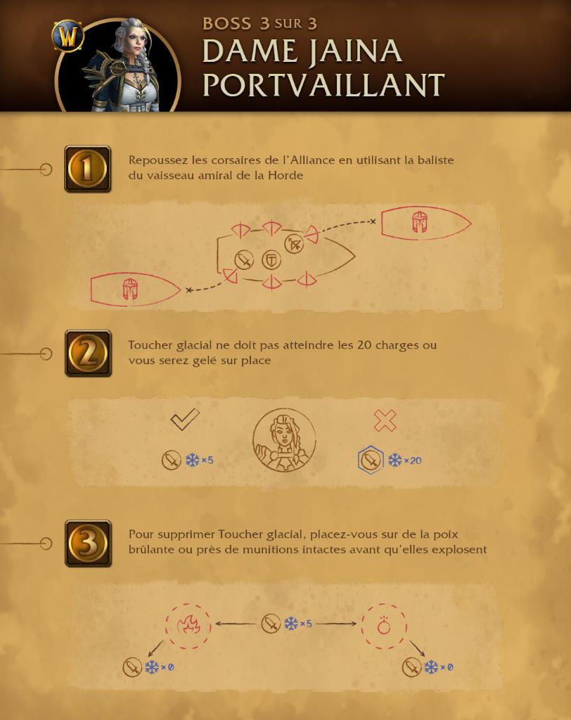 Après avoir vaincu le roi Rastakhan sur son trône au cœur de l'empire Zandalari lors de la deuxième aile en outil raid depuis le 13 février, l'Alliance prend sa retraite pour retourner en capitale mais la Horde n'a pas encore dit son dernier mot puisque la vengeance a sonné. Ce mercredi 27 février marque l'ouverture de la dernière aile de l'outil raid accessible à partir de 350 niveau d'objet pour tenter d'obtenir du butin avec 370 de niveau d'objet. Cette aile nommée la victoire ou la mort pour la Horde ou la puissance de l'Alliance vous confronte à trois boss : Mekkanivelle, Rempart tempétueux et Jaina Portvaillant pour les deux factions. Vous pouvez retrouver l'aperçu et conseils proposés par Blizzard pour décrocher la victoire contre vos ennemis.