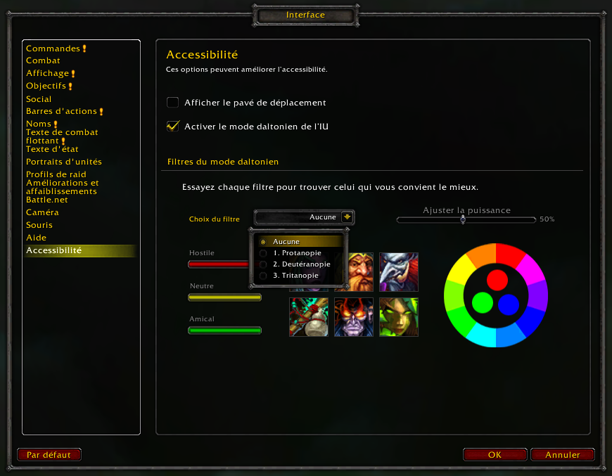Dans la mise à jour 6.1 de World of Warcraft, vous trouverez dans l’interface utilisateur un nouveau système conçu pour aider les joueurs atteints de troubles de la vue courants liés au daltonisme.