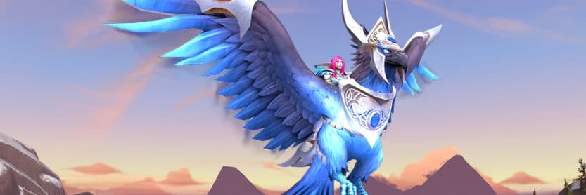On ignore la véritable raison de l’arrivée du Flambeciel saphir en Azeroth. Une chose est sûre, son éclat (et sa chaleur !) surpassent de loin ceux de toutes les créatures volantes. Aussi vive que l’éclair et cuirassée jusqu’au bec, rien de mieux que cette monture pour vous accompagner lors de vos dangereux périples.