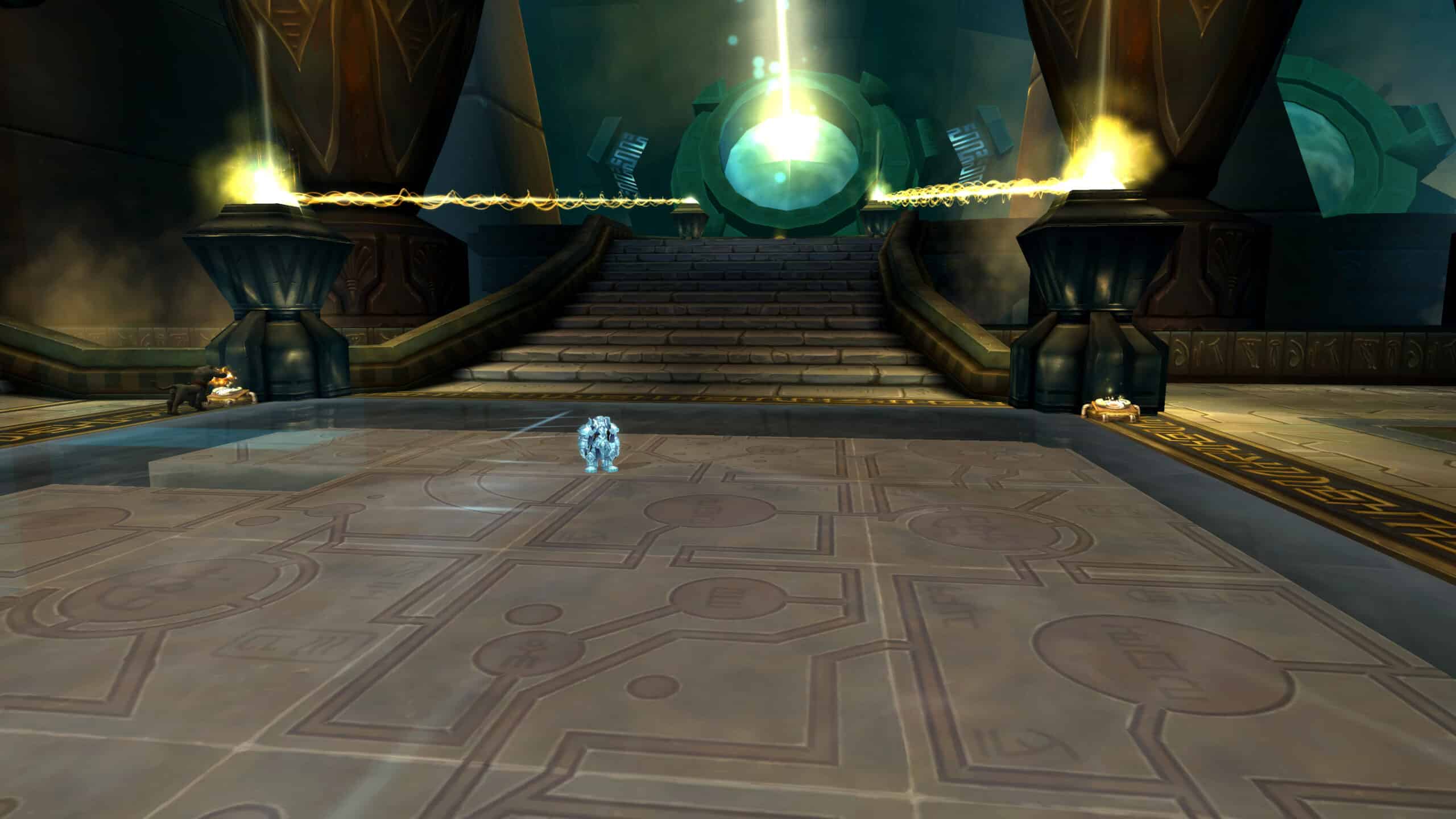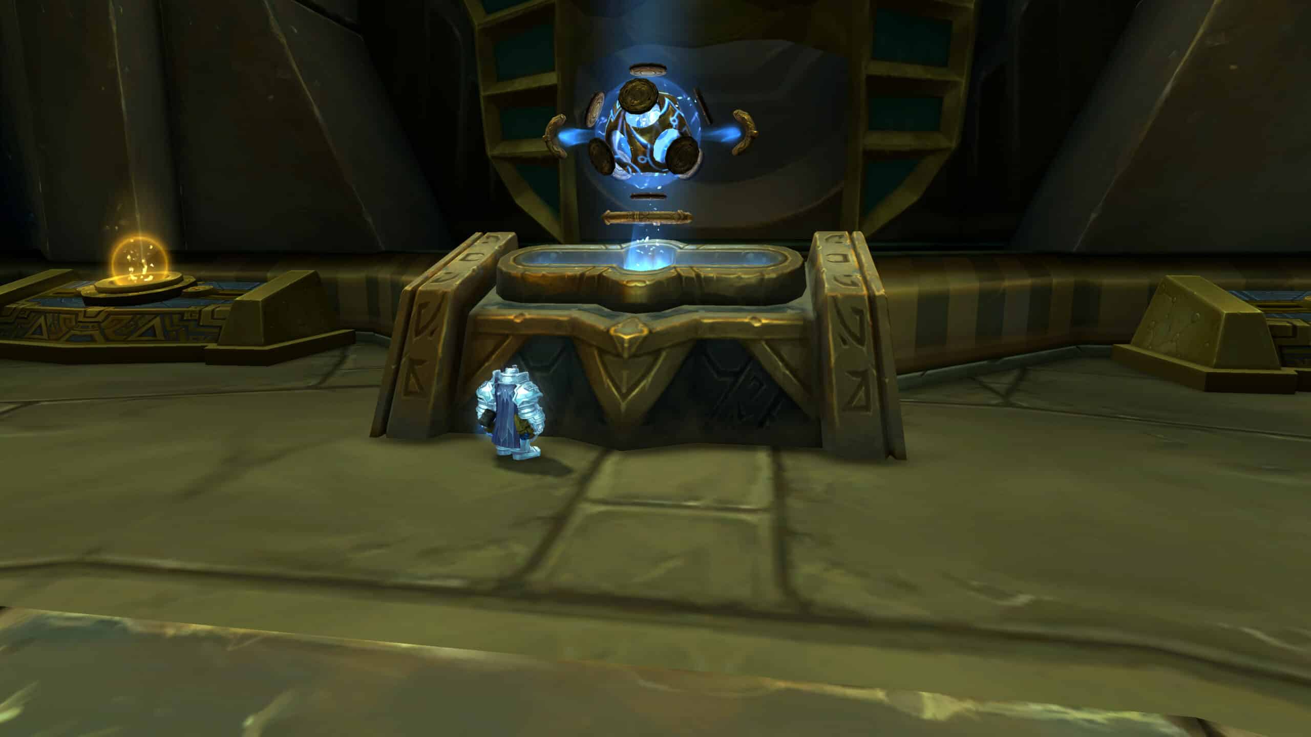 Une fois que l'analyse a révélée que la forge de l'Origine de Uldum est inactive, vous devrez rejoindre Magni Barbe-de-Bronze à l'extérieur des Salles de l'Origine pour une aventure au cœur du complexe des Titans.