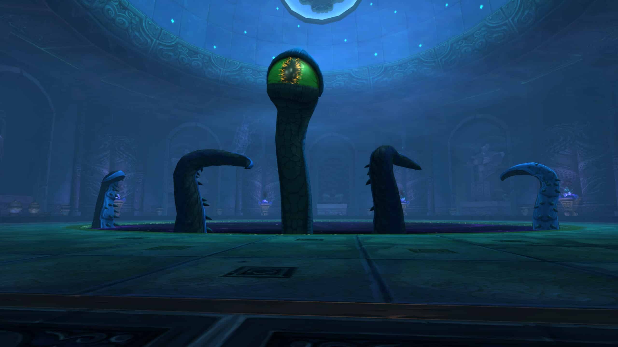 Lorsque vous arrivez dans les Caveaux Mogu'shan en Pandarie par le passage secret, les mantides sont sous l'influence de N'Zoth aux ordres du mande-fonds Xith'el pour corrompre les lieux. Plusieurs manifestations de la corruption de N'Zoth doivent être repoussés dans le Dépôt pour reprendre le contrôle. Mais N'Zoth intervient dans votre esprit pour susurrer des paroles : « Percevez-vous la frénésie de l'essaim ? Il sent ce qui s'annonce. Il sait que vous porterez son message ».