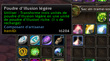 Les nouvelles poussières riches et légères fonctionnent de la même manière que les essences inférieures et supérieures de WoW Vanilla. Vous pouvez ainsi transformer une unité de poudre d'illusion riche en trois unités de poudre d'illusion légère et inversement. Ceci permet de pouvoir convertir vos composants d'artisanats en fonction des recettes requises pour faire progresser votre métier.