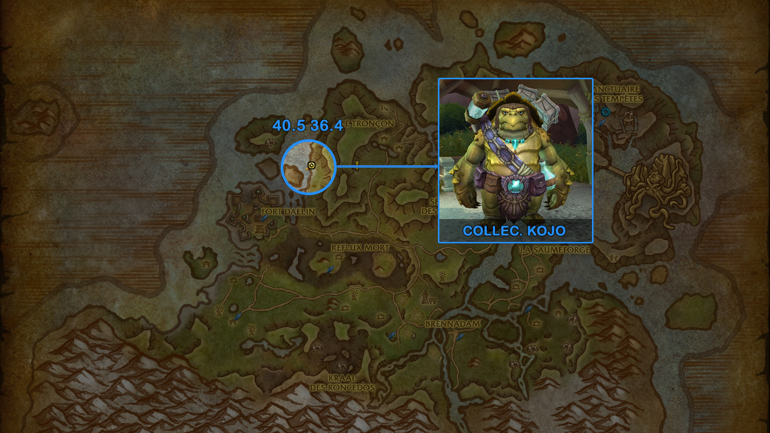 Collectionneur Kojo est l'émissaire de la réputation localisé à Zuldazar pour la Horde et vallée Chantorage pour l'Alliance :