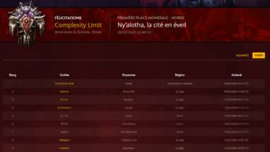 Vous pouvez découvrir le classement des 100 meilleures guildes de chaque faction ci-dessous :