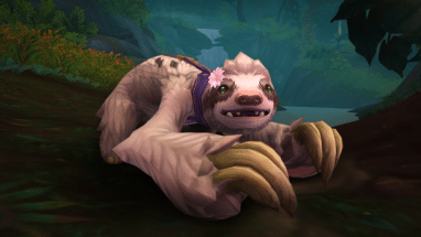 Voici Daisy, l’un des paresseux les plus nonchalants d’Azeroth. Entre deux batailles, rien de tel que d’apprécier le monde à son rythme pour profiter d’un vrai moment de détente. Lorsque viendra l’heure de repartir à l’aventure, il vous suffira de l’appeler d’un simple « /beckon » et elle vous accompagnera volontiers, confortablement installée sur votre dos.