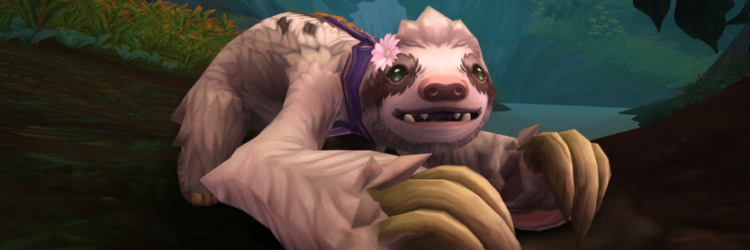 Voici Daisy, l’un des paresseux les plus nonchalants d’Azeroth. Entre deux batailles, rien de tel que d’apprécier le monde à son rythme pour profiter d’un vrai moment de détente. Lorsque viendra l’heure de repartir à l’aventure, il vous suffira de l’appeler d’un simple « /beckon » et elle vous accompagnera volontiers, confortablement installée sur votre dos.