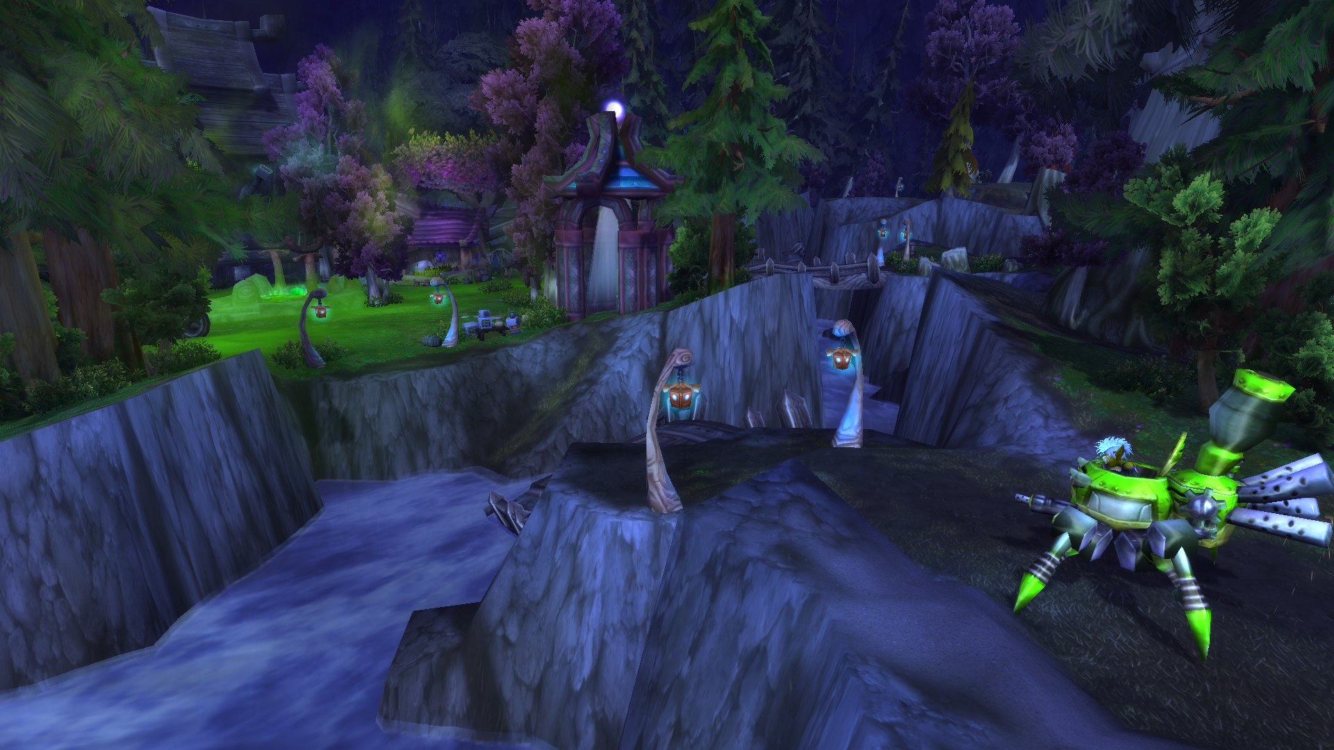 Une fois à destination de Sombrivage, l'environnement est marqué par une immense Lune noire étrange qui plonge la région dans les ténèbres. Cette lune noire est inhabituelle comparée au chaos laissé suite à l'incendie de Teldrassil. Depuis cet assaut, un camp de gobelin s'est installé à proximité de Lor'danel avec une ratiboiserie pour piler des ressources. Mais quelque chose d'étrange s'est passé à Sombrivage à cause des Elfes de la nuit. Pour protéger la ratiboiserie, des Elfes de la nuit devront être éliminés pour ranimer les dépouilles des défunts Kaldorei en Forestiers-sombres en invoquant Brynja, la val'kyr de Sylvanas. Les gobelins de la ratiboiserie se sont servis de déchiqueteurs pour se débarrasser des arbres autour de Lor'danel mais des ronces ont pris ces machines en otage qu'il faut libérer pour poursuivre la production.