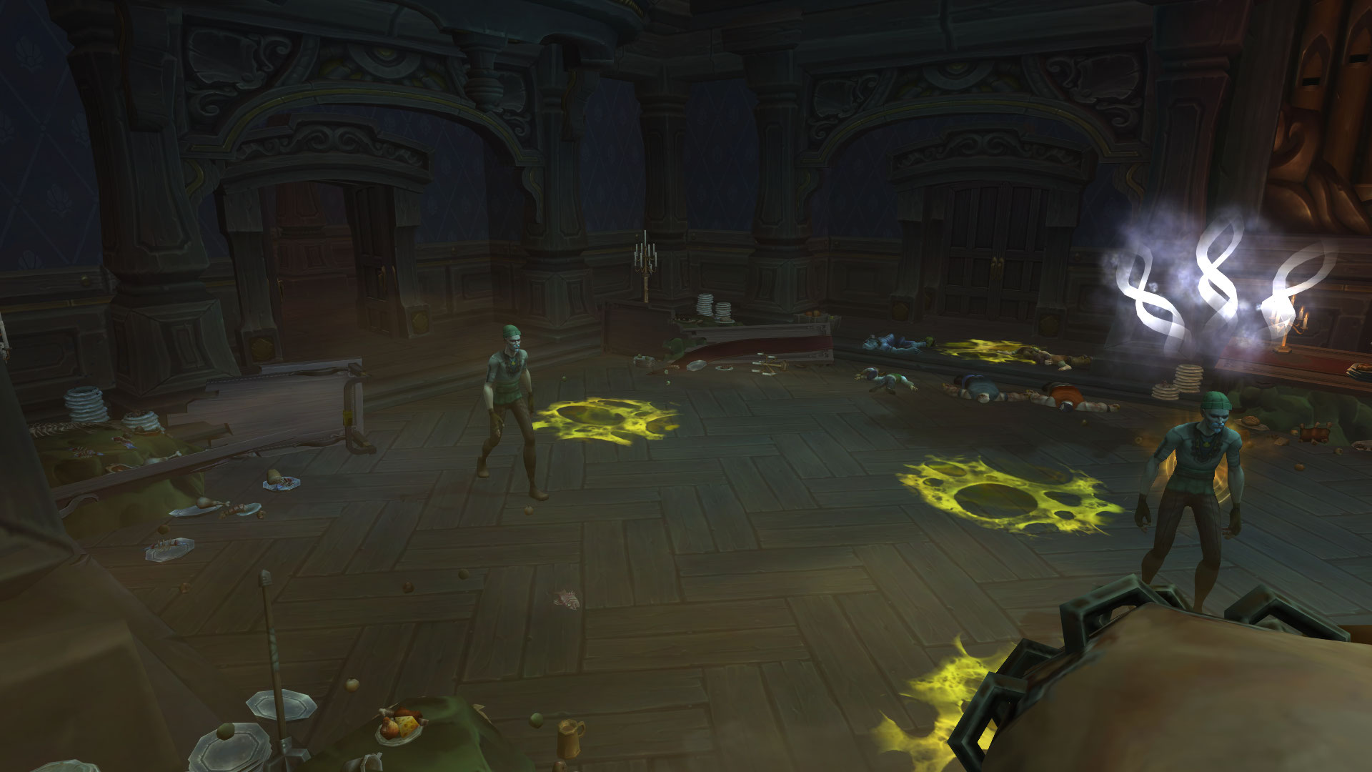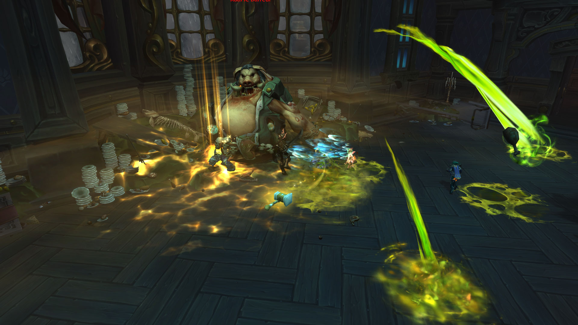 Commentaire : Ce combat pourrait vite dégénérer si les servants rebuts ne sont pas gérés avec des effets de contrôle pour ralentir. La salle de combat est particulièrement petite que la distance pour se rendre à portée du boss est courte. Raal le bâfeur en lui-même n'est pas très complexe, les flaques doivent être évitées et les joueurs devront trouver un passage pour éviter les trois attaques successives d'attendrir sans marcher dans une vomissure. Ces flaques d'expulsion putride ne peuvent pas être contrôlés en mode normal, mais plutôt en héroïque ou supérieur avec l'invocation du suinteux bilieux.