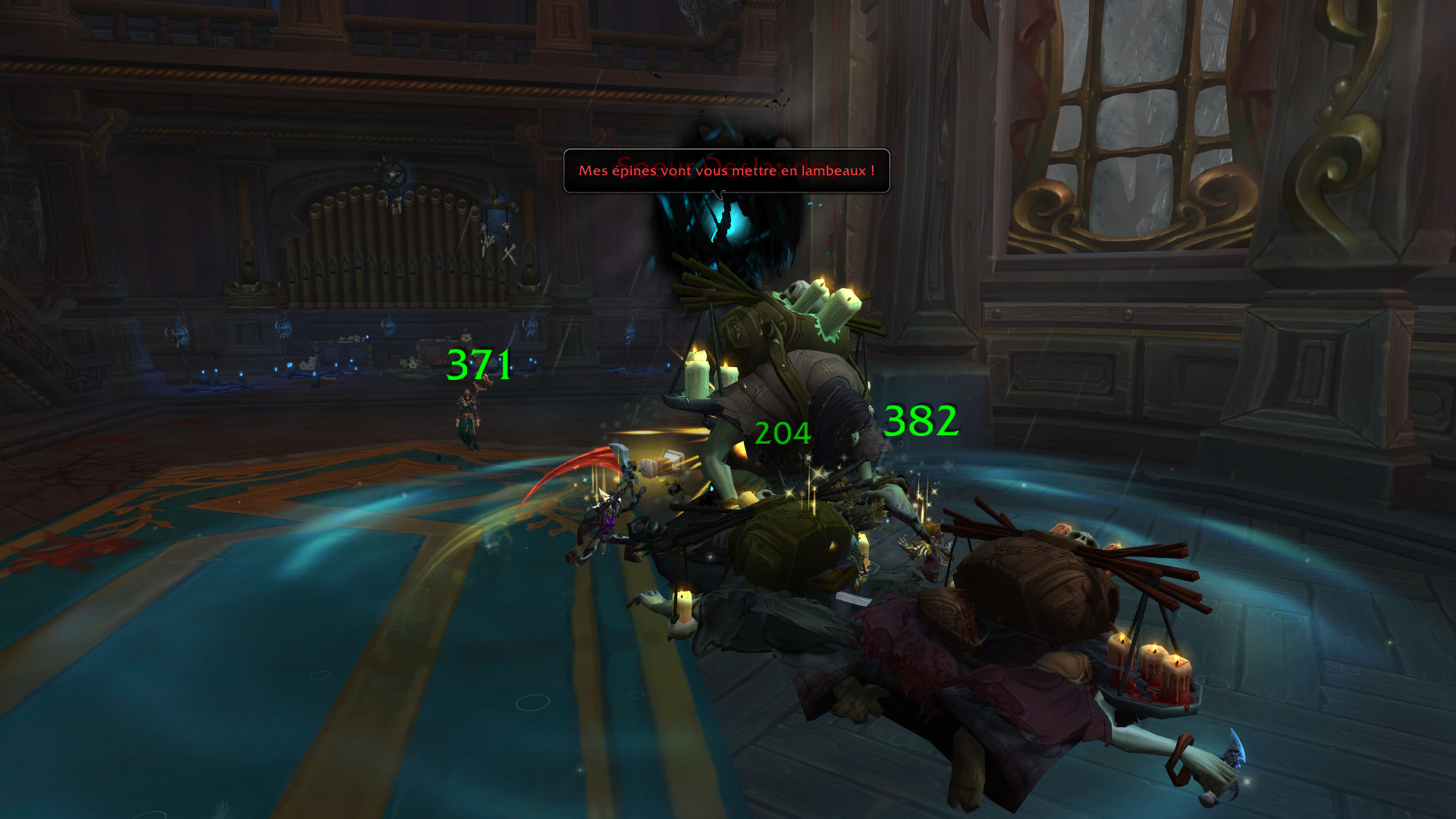 Commentaire : Le combat n'est pas satisfaisant pour un dernier boss de donjon ! En plus des effets visuels encore manquants (c'est dommage !), les esclavagistes n'ont aucune mécanique majeure hormis un léger trait d'effroi infligé sur le tank. Nous pouvons espérer une technique additionnelle pour forcer à la défaite ou le contrôle de ces créatures comme une amélioration progressive de dégâts ou un effet de saignement cumulable. Ou on peut également penser à l'essence d'effroi (100% d'énergie du boss) qui inflige davantage de dégâts selon le nombre de serviteurs actifs.
