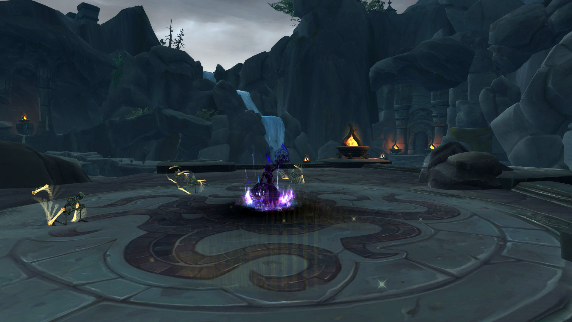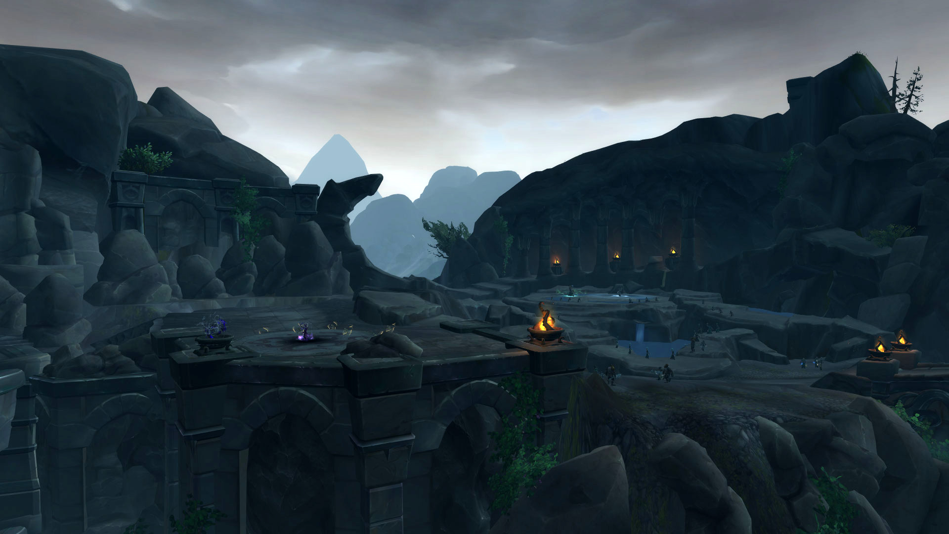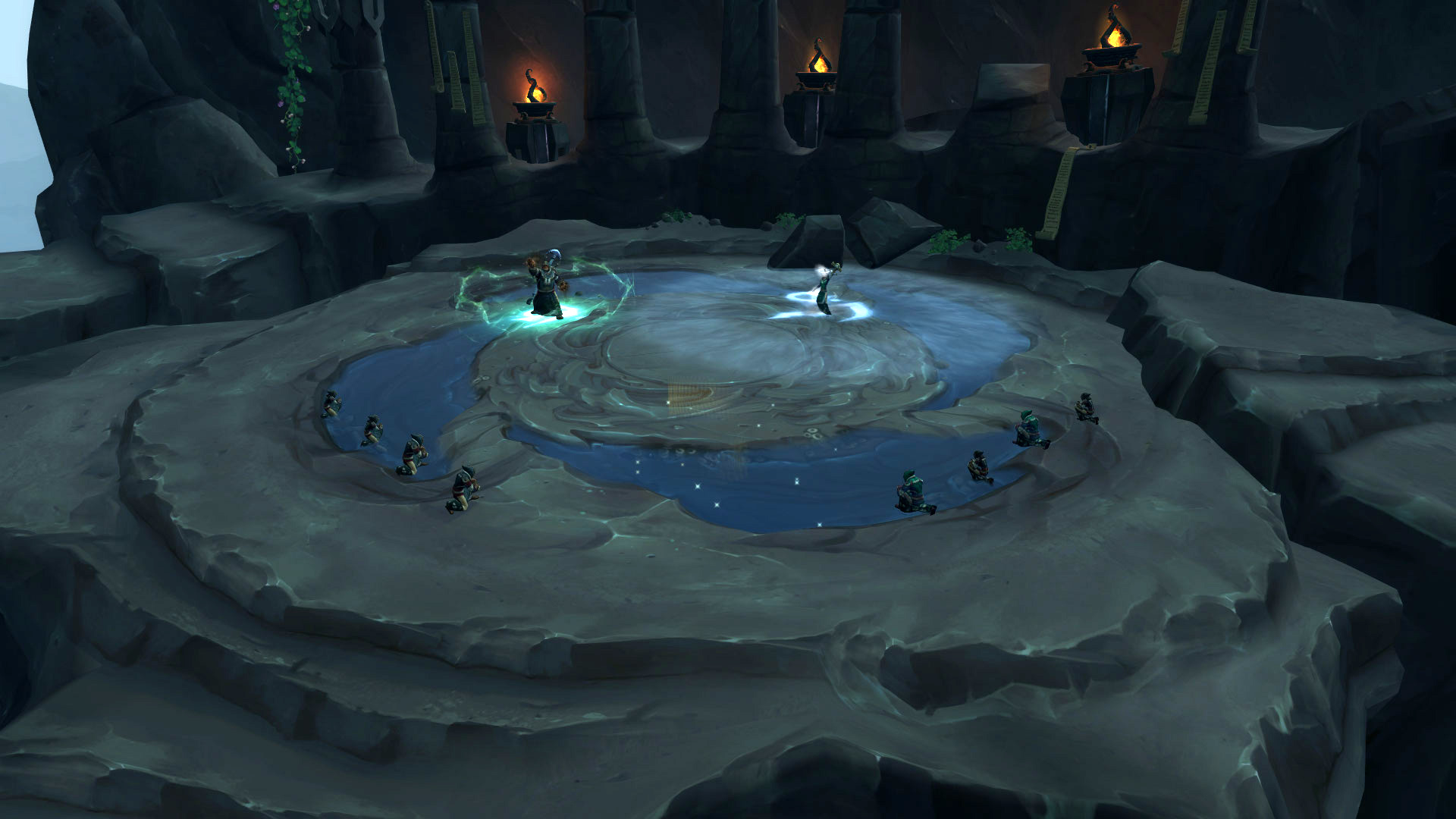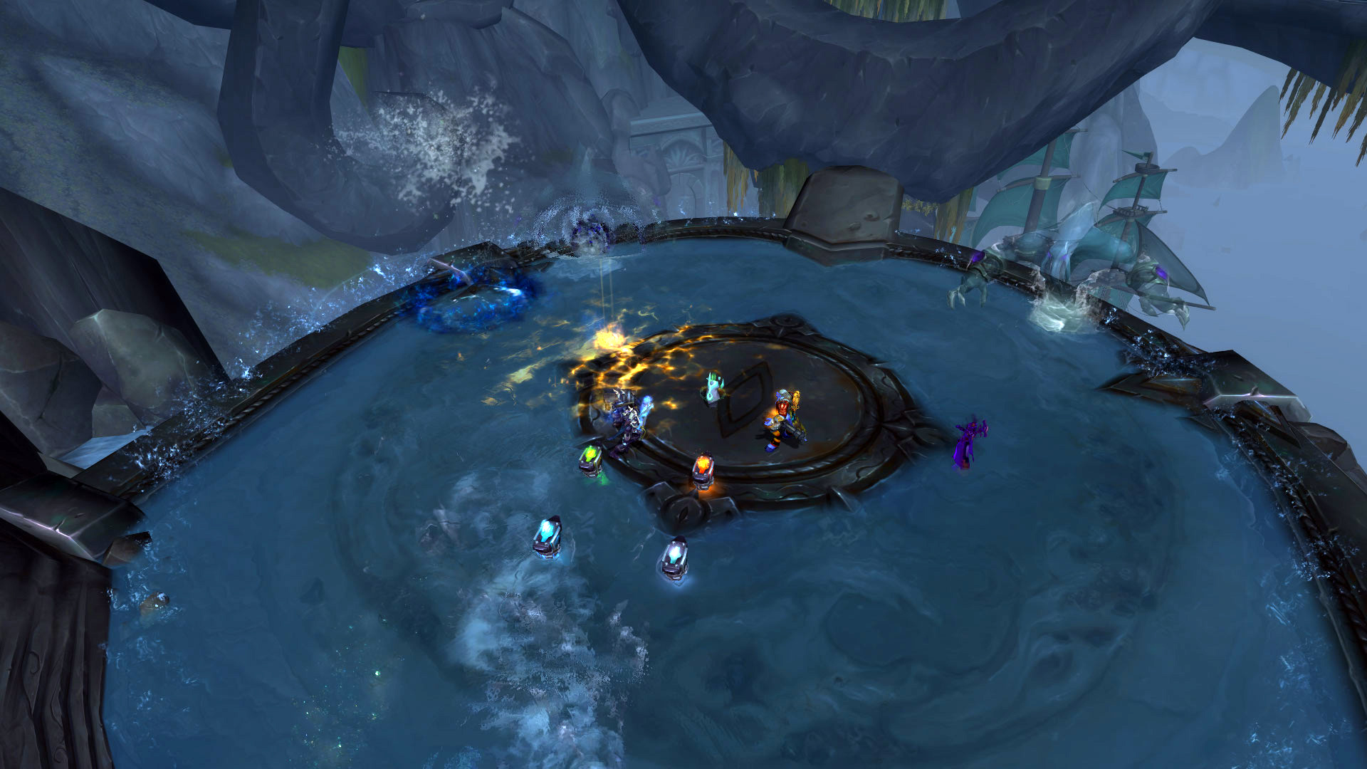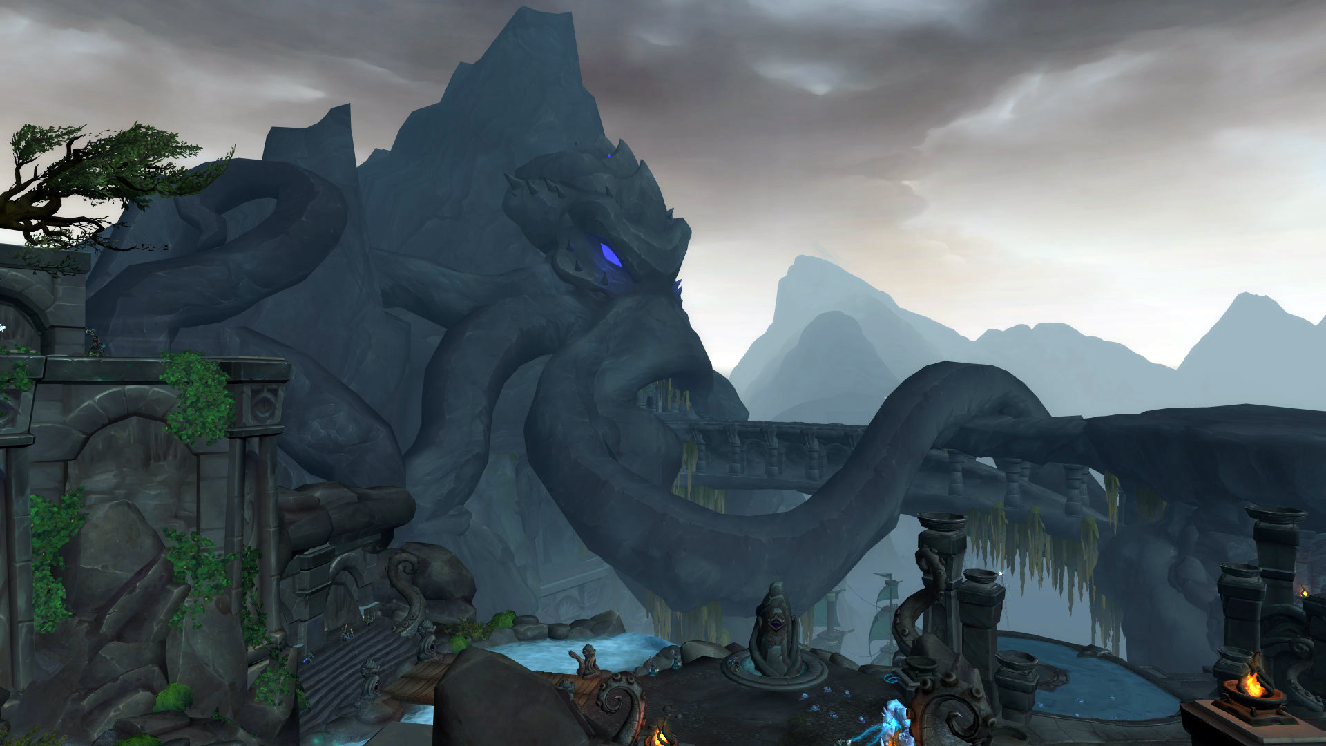 L'architecture du sanctuaire des tempêtes permet de commencer notre périple au sommet de la chaîne montagneuse. Après avoir descendu l'escalier principal avec la splendide fontaine d'eau qui décore votre environnement, le seigneur Chantorage invoque l'élémentaire Aqu'sire pour défendre le temple sacré. Une fois vaincu, un tunnel devra être emprunté sous le blason des créatures des profondeurs va nous permettre de rejoindre la rive opposée pour combattre le conseil d'eauracles défendus par leurs acolytes. L'ascension vers le Temple sacré est désormais accessible après avoir terrassé plusieurs humains avec le visage des torve-esprit. Lors de l'arrivée au temple, on apprend que le seigneur Chantorage s'est allié avec la reine Azshara pour un plan machiavélique. Une fois qu'il a été vaincu, le passage vers les profondeurs s'ouvre pour nager dans les océans de Kul Tiras en évitant les méduses sur votre passage. Au bout de ce tunnel, une plateforme contrôlé par le héraut sans-visage Vol'zith l'Insidieux avec des eauracles sous son joug pour bénir les navires au service d'Azshara.