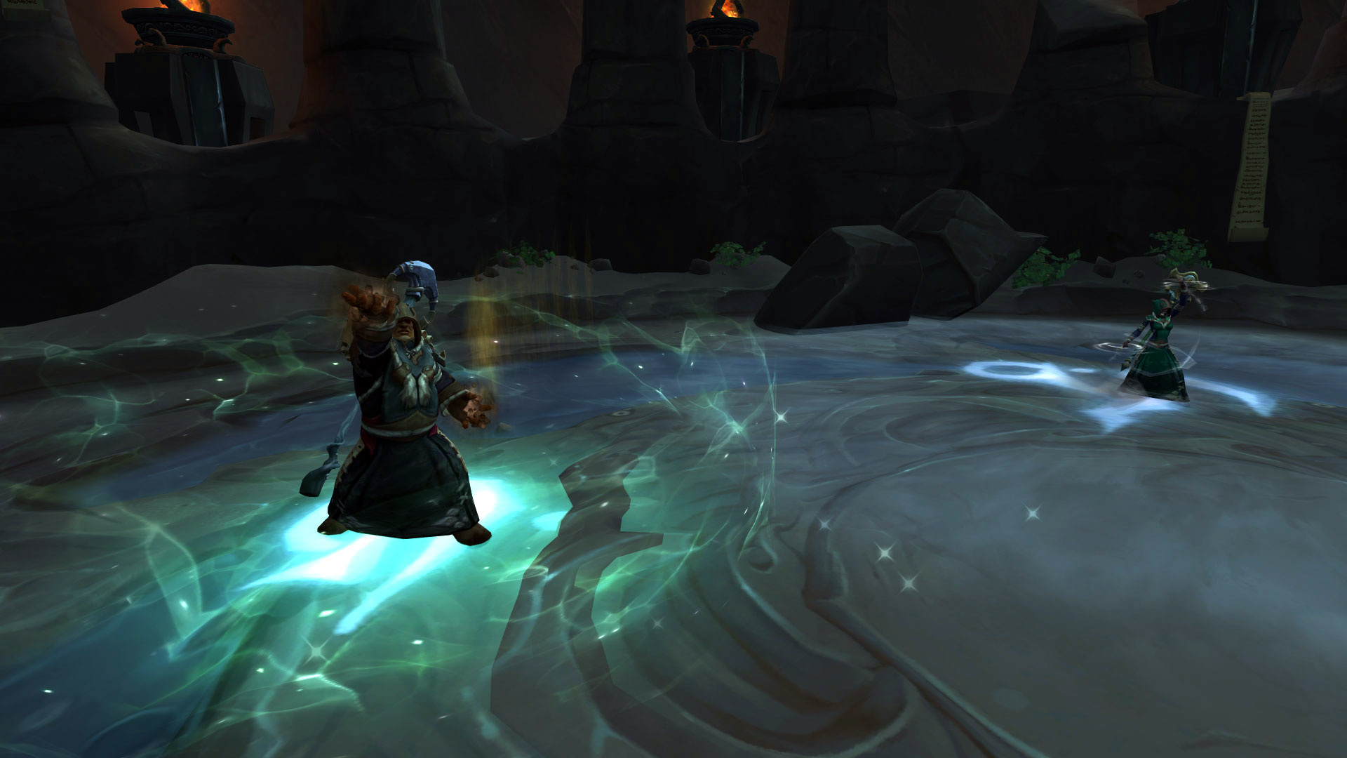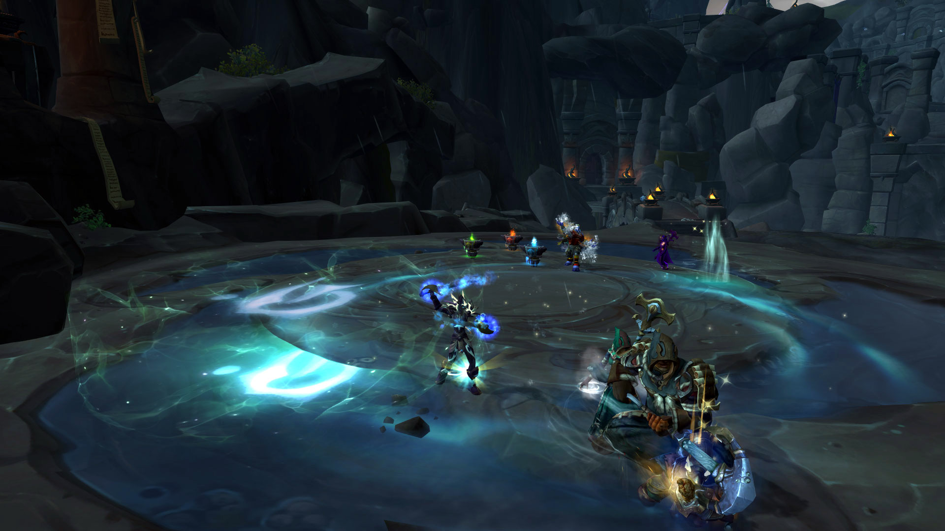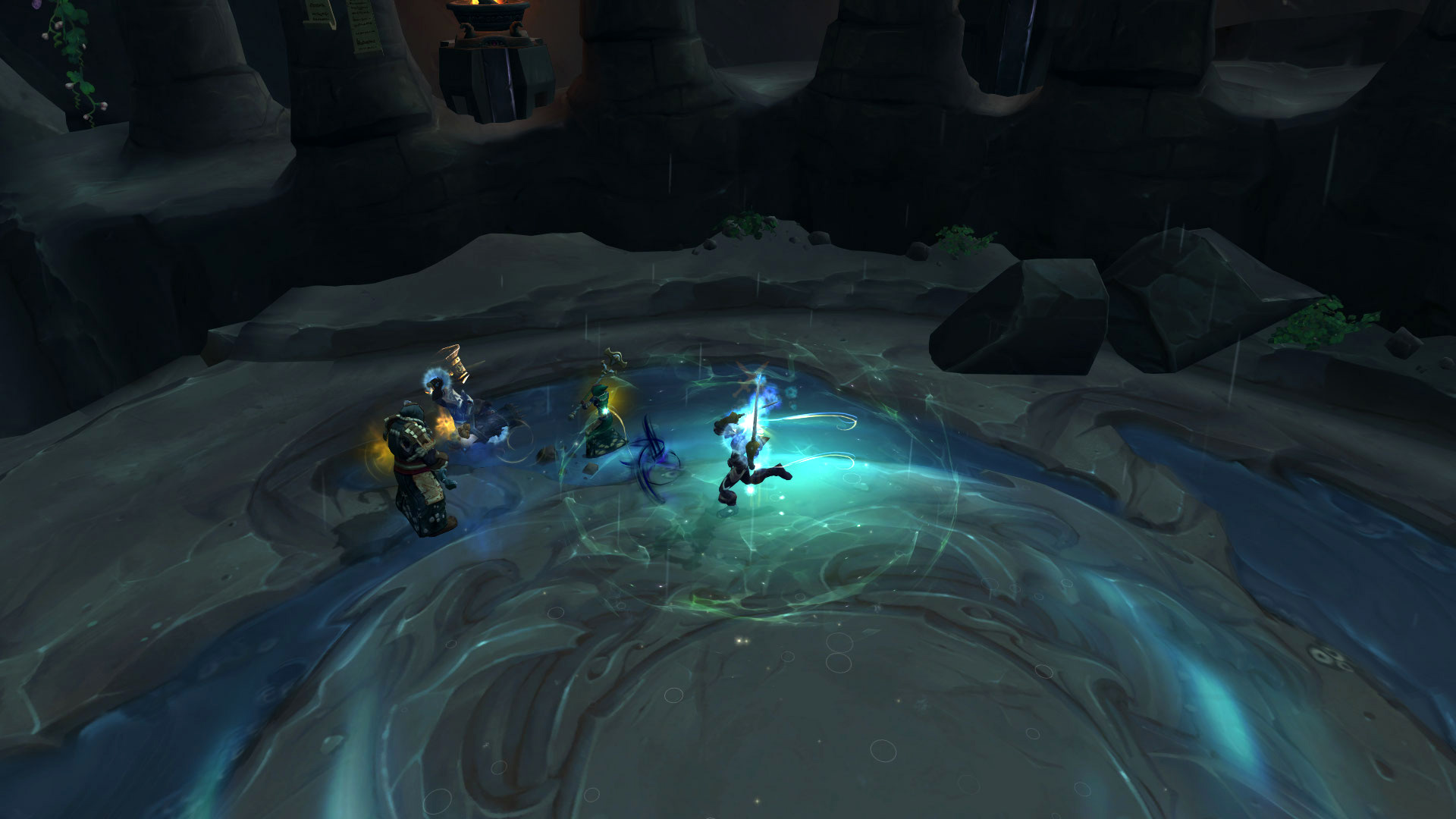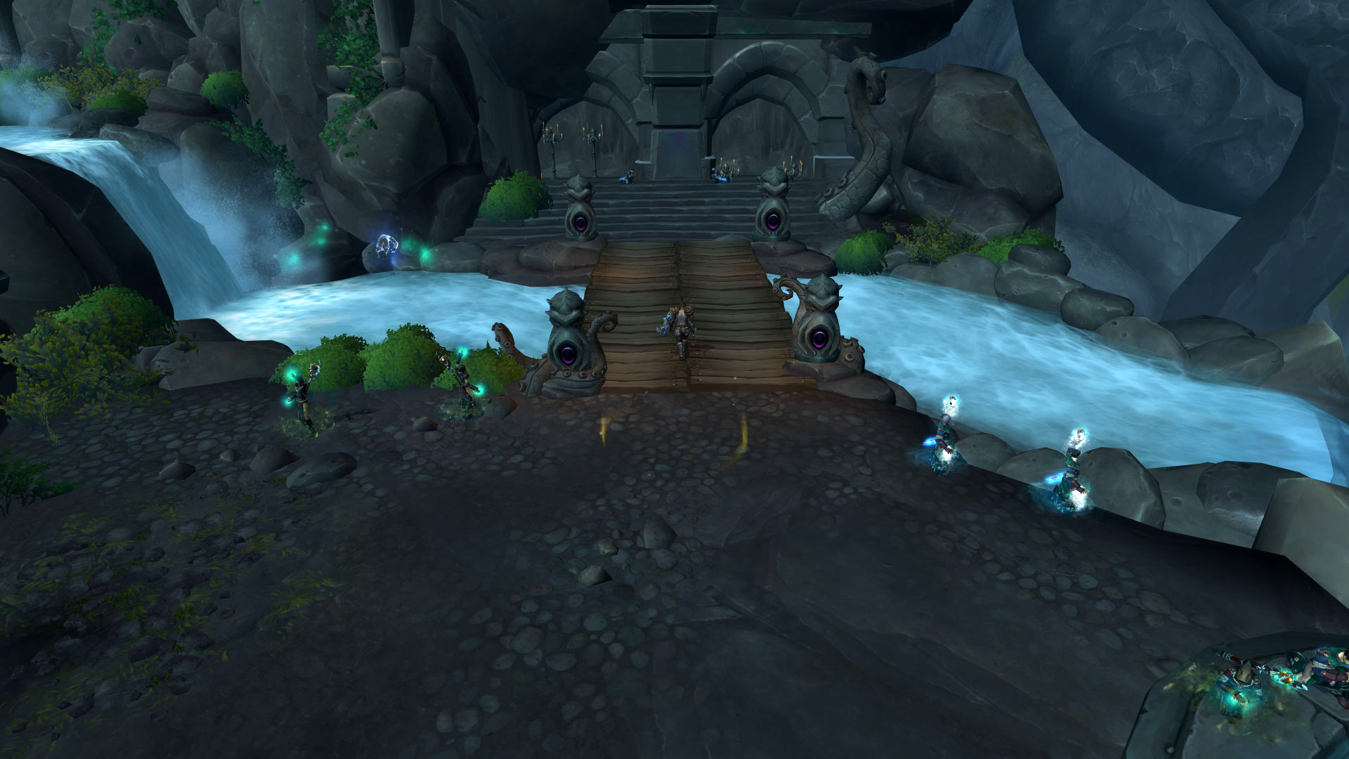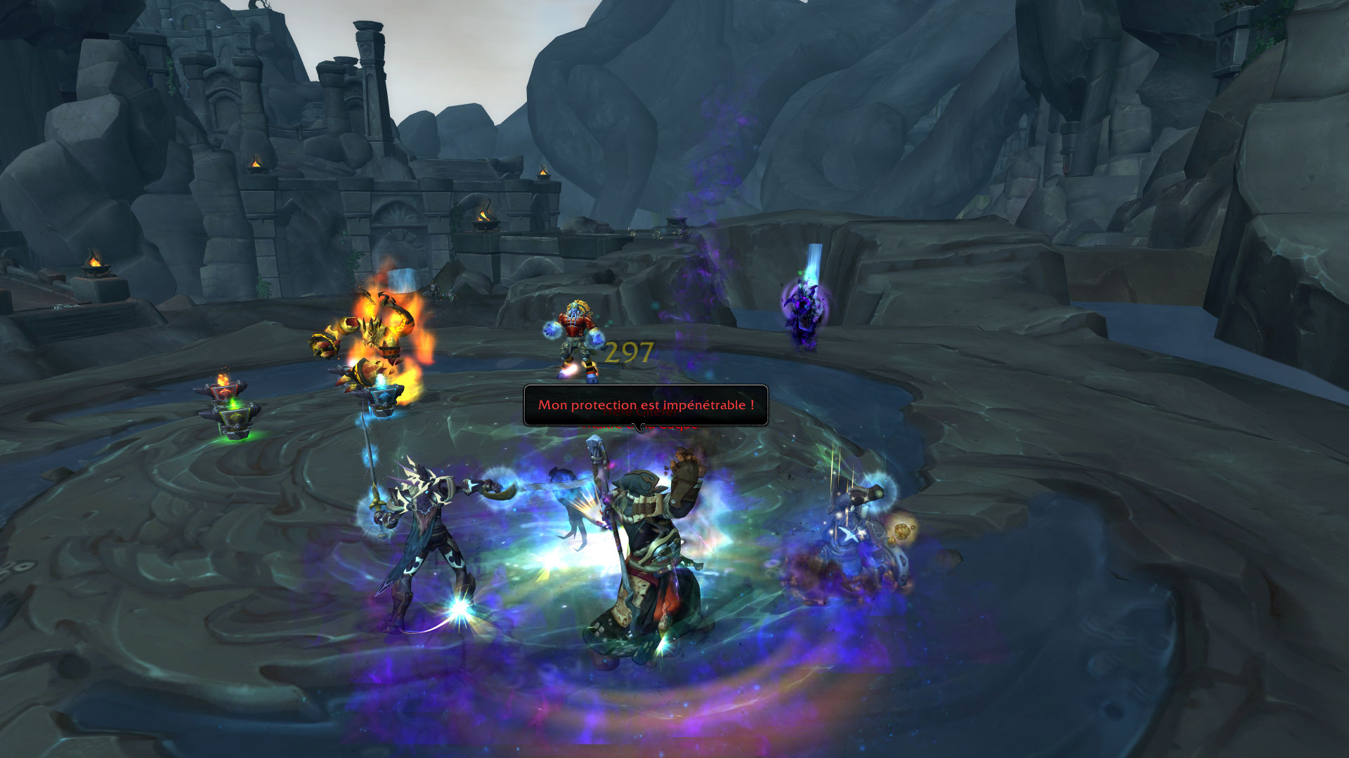 Le groupe est séparé pour gérer les créatures avec les DPS dans le 1er groupe et le tank & soigneur dans le 2ème groupe :