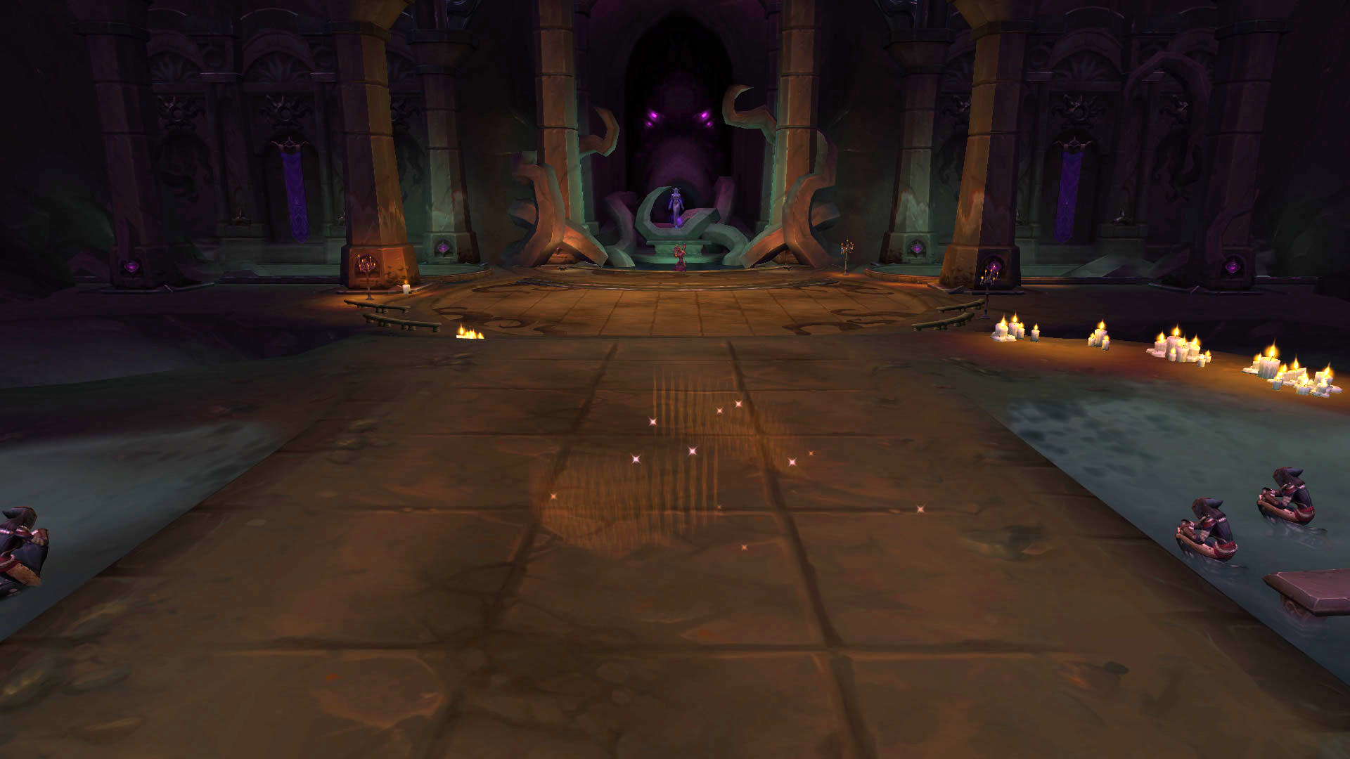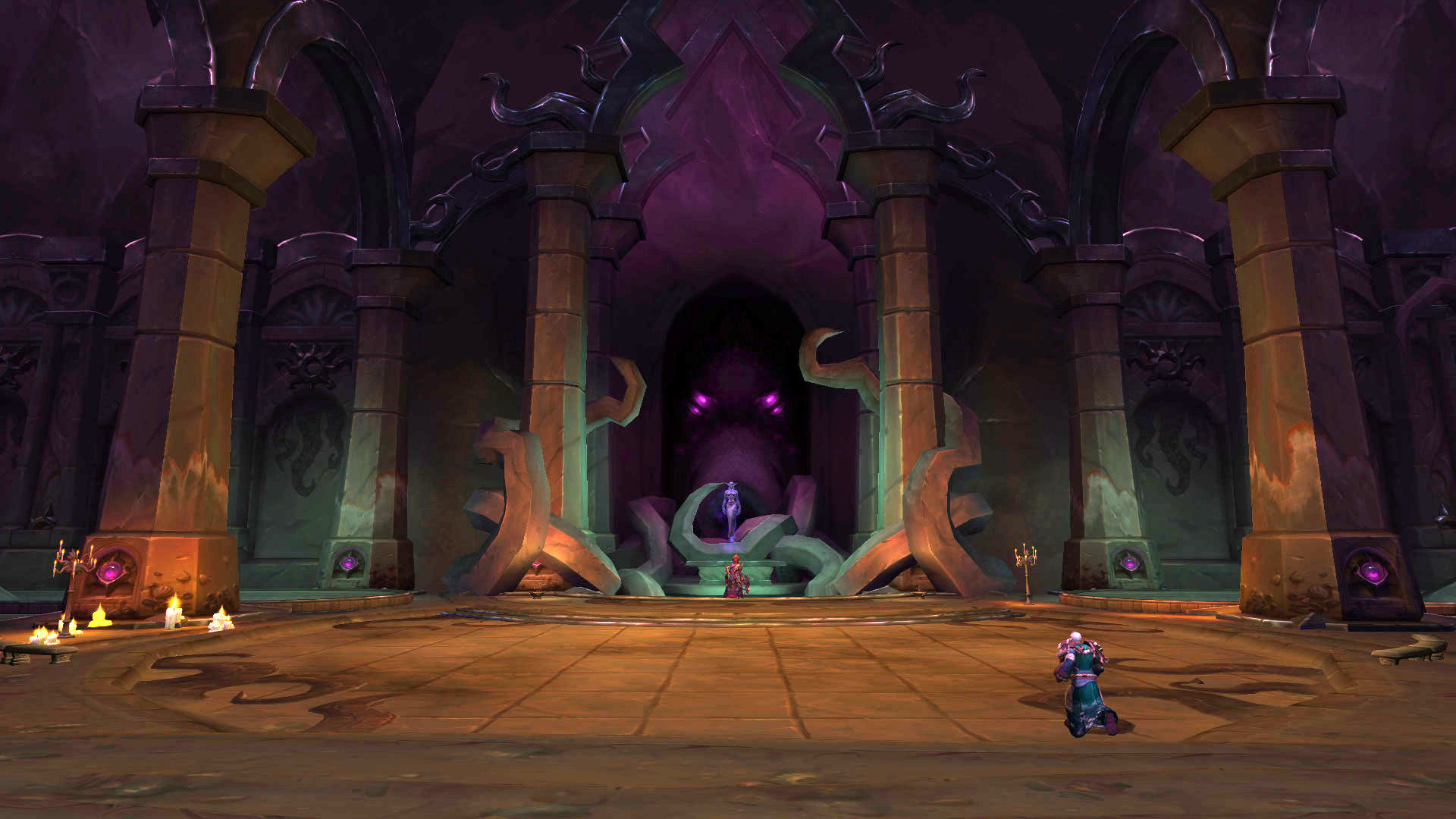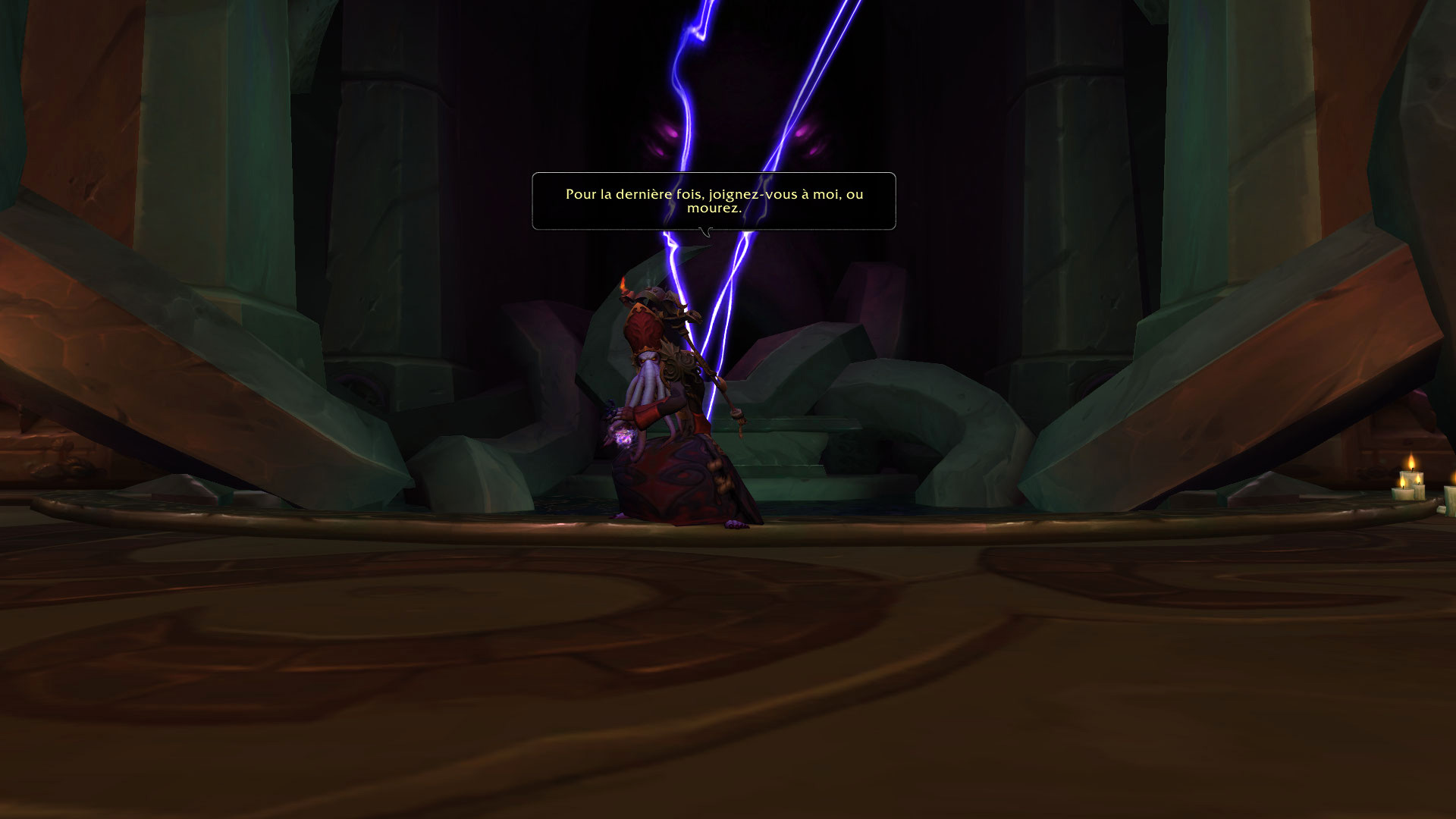 Commentaire : Ce combat est très satisfaisant pour un dernier boss de donjon, bien qu'il nous rappelle le héraut Volazj de la citée d'Ahn'kahet par sa mécanique de séparation en deux groupes. Le groupe de DPS pourront rapidement avoir des difficultés si Consommer l'essence n'est pas interrompue à cause des dégâts de zone générés et de la récupération de points de vie de la créature. Cette étape est primordiale pour permettre de rejoindre rapidement votre soigneur et tank. Il est également très intéressant pour le soigneur à devoir évaluer les risques occasionnés par les murmures de puissance. Cet effet bénéfique va permettre de contrer les points de vie importants du boss, mais ne prenez pas trop de risques sous peine de se faire punir par la mort d'un allié.