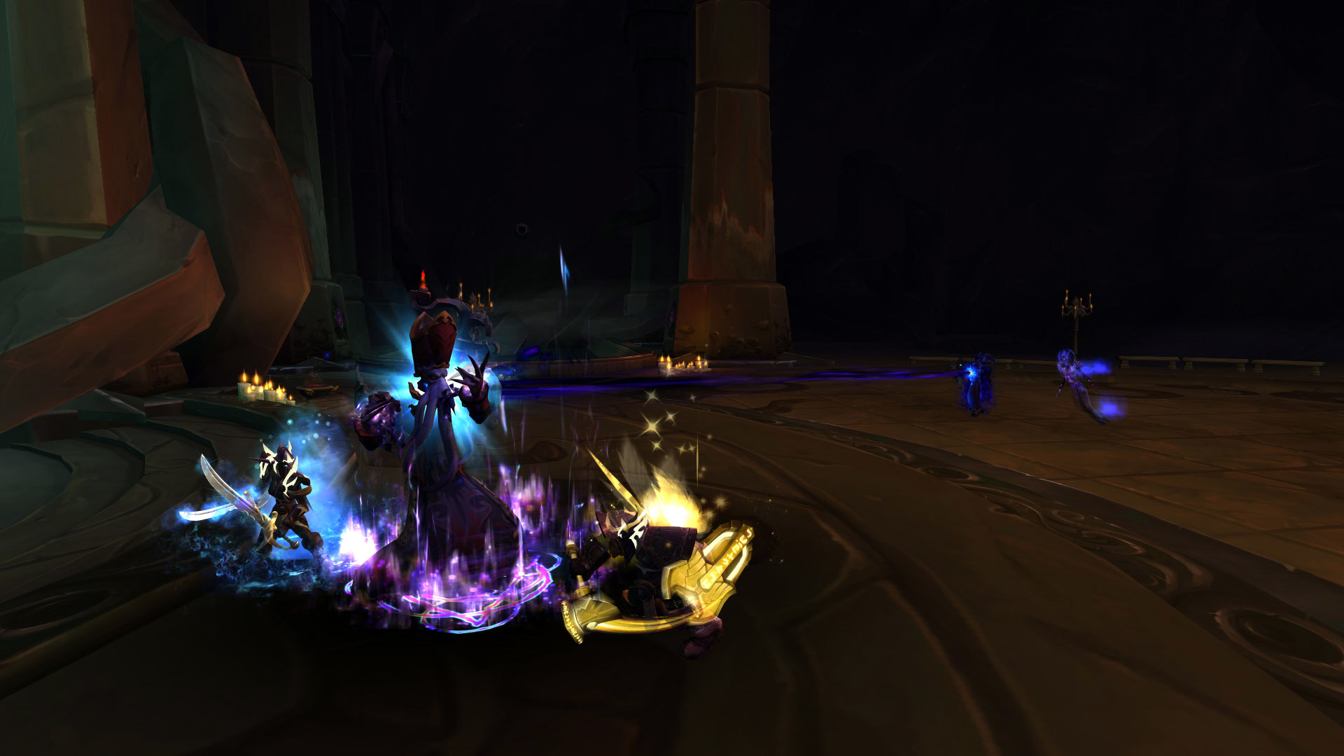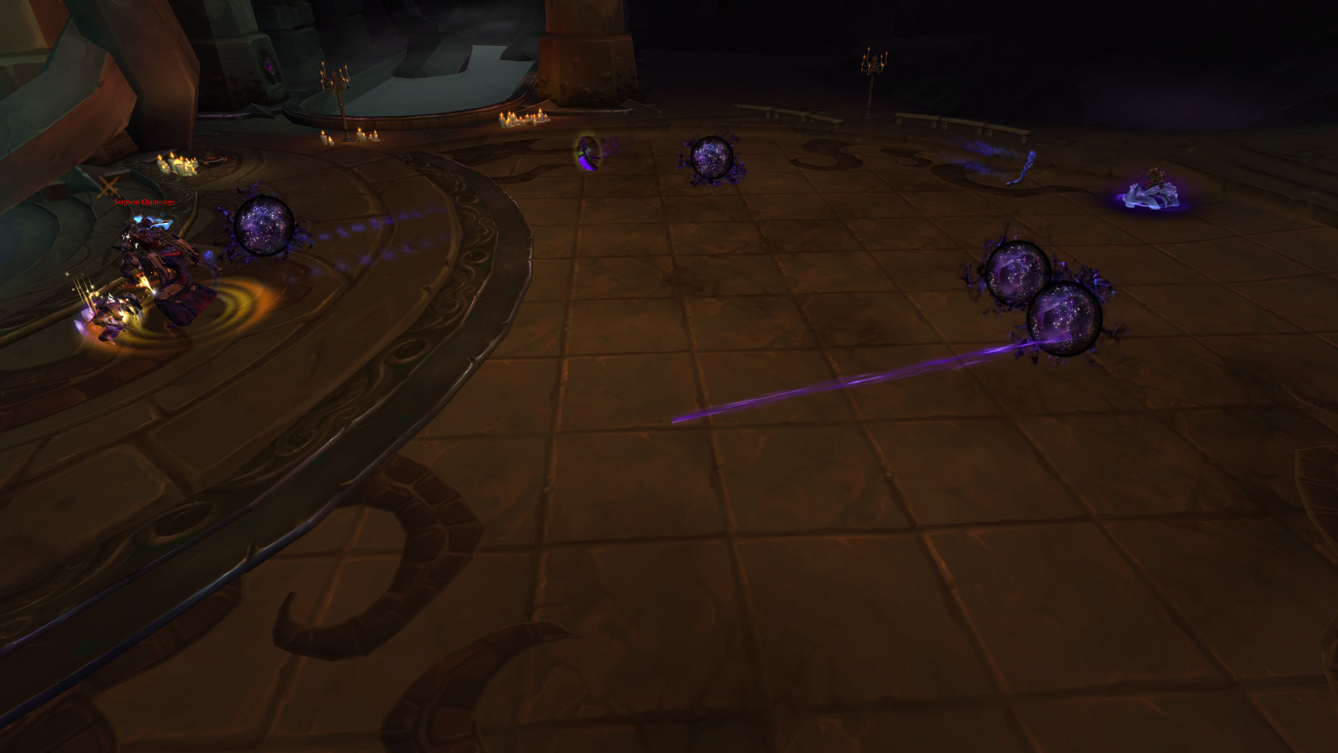 Commentaire : Le combat est intéressant puisque la création des espaces est à double tranchant ! Bien entendu, ils doivent être retournés à votre avantage pour supprimer les charges de déflagration tranchante de Faye par l'espace de renforcement, ou alors rendre insensible aux effets de déplacements de Gîtefer par l'espace de rapidité. Bien que ces zones ne sont pas crées en même temps, il est important également de ne pas les laisser dedans pour éviter de rendre le combat plus difficile. Sinon, rien de particulier à dire sur ce combat, les DPS devront être attentifs à interrompre Faye sauf s'il est sous sa bénédiction, ou le tank devra kite Gîtefer lorsqu'il est sous sa bénédiction.