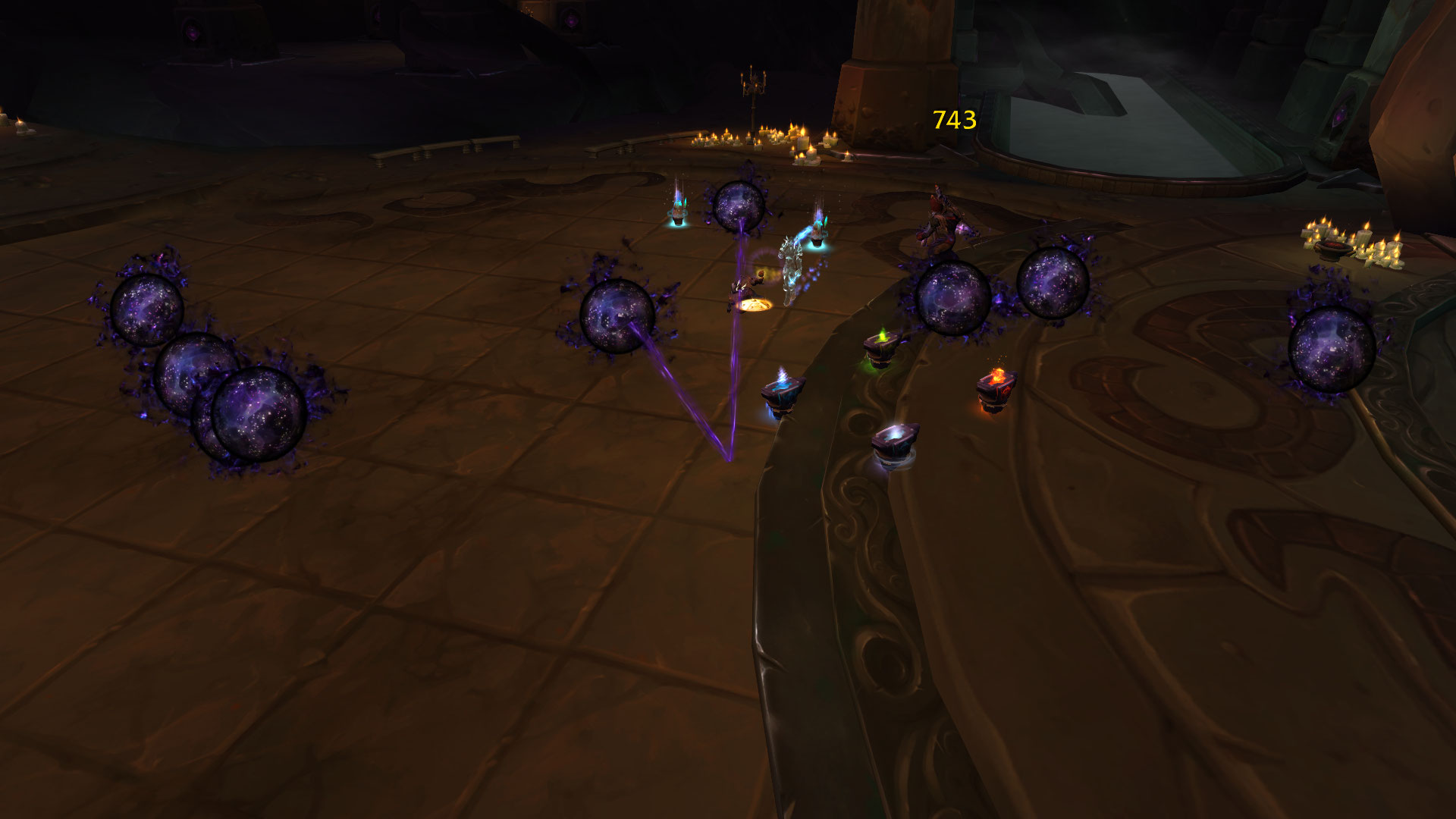 Commentaire : Je suis très mitigé de ce combat. Pour être honnête, je suis partagé puisqu'il semble manquer de capacités, bien qu'en héroïque et mythique, il réduit la vitesse de déplacement de la cible par une magie dissipable. Les orbes persistent jusqu'à la fin du combat, et c'est une bonne chose pour mettre en place une rotation de soak avec une immunité pour alléger les déplacements. Le torve-esprit aura un rôle très dérangeant puisque les orbes continuent de poursuivre ce personnage-joueur qu'il faudra protéger impérativement en cas de besoin.