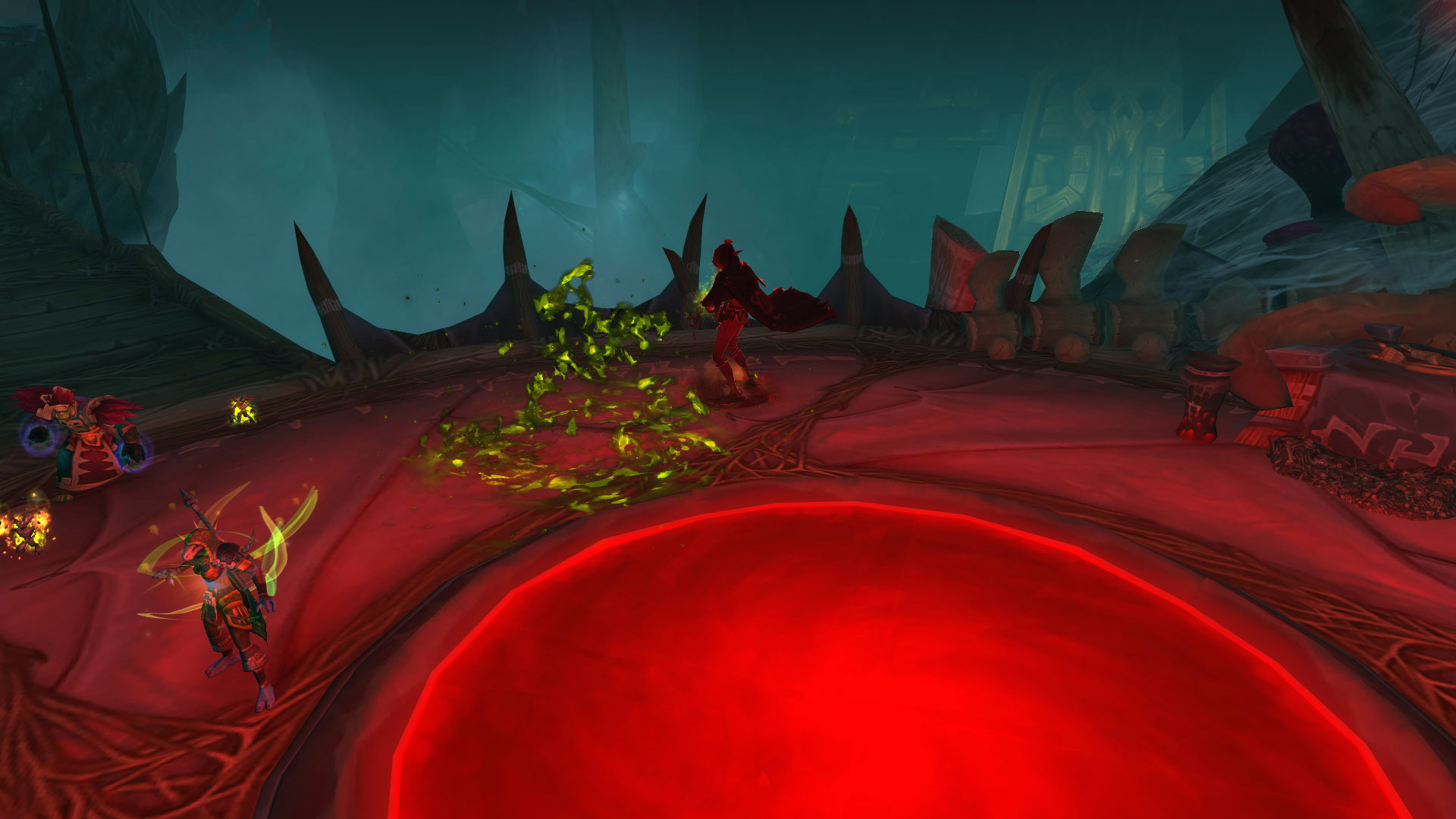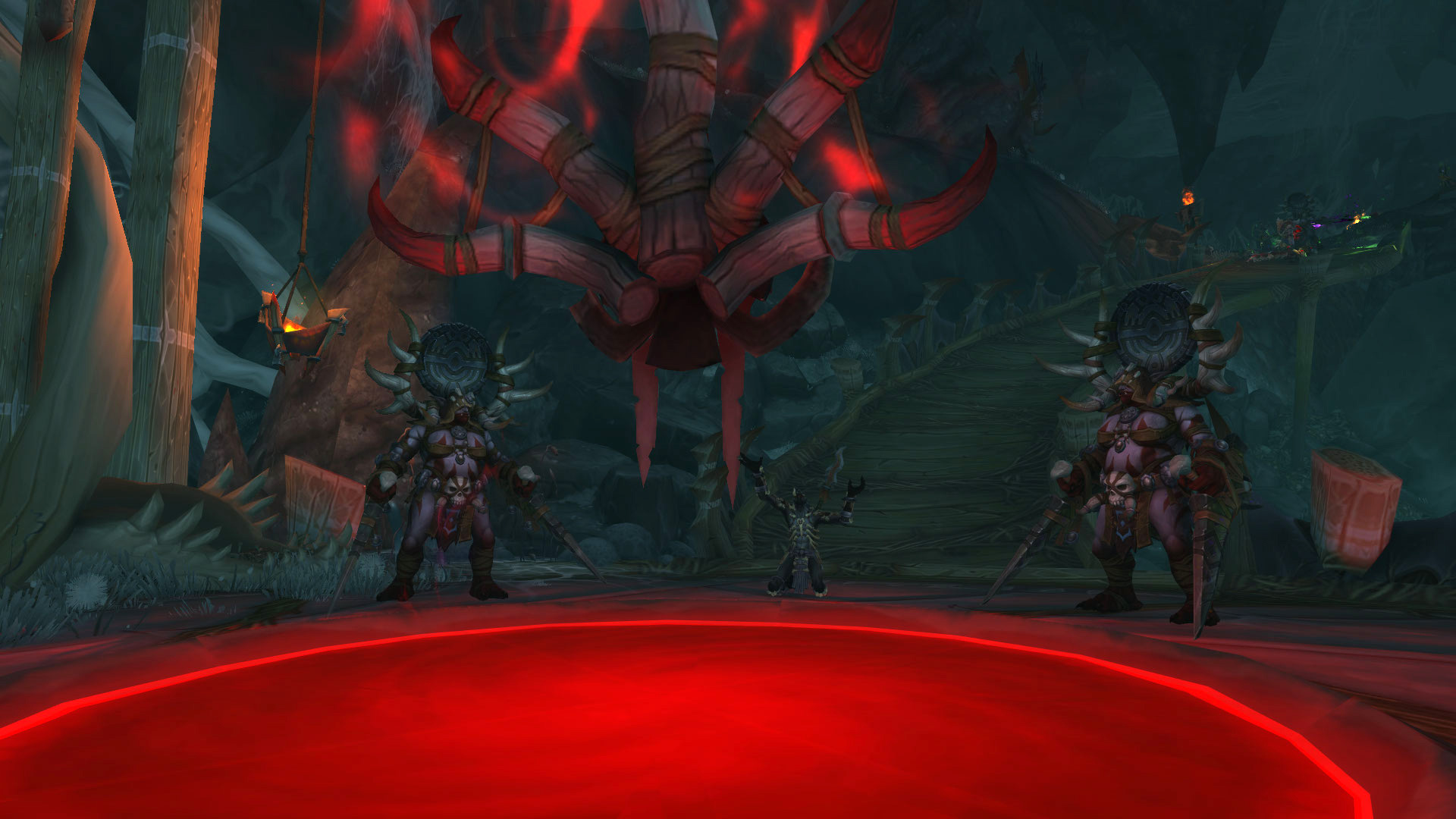 Leaxa l'Aînée est une trollesse de sang qui utilise les pouvoirs du Dieu du sang G'huun contre ses ennemis. Chaque technique utilisée contre les personnages-joueurs appliquent une charge cumulable de la Souillure de G'huun infligeant des dégâts périodiques toutes les secondes et absorbe également ce même montant de soins reçus. Cet effet devra être mitigé au maximum par les deux techniques évitables de Leaxa qui se dissipe lorsque le bouclier d'absorption est enlevé par les soins.