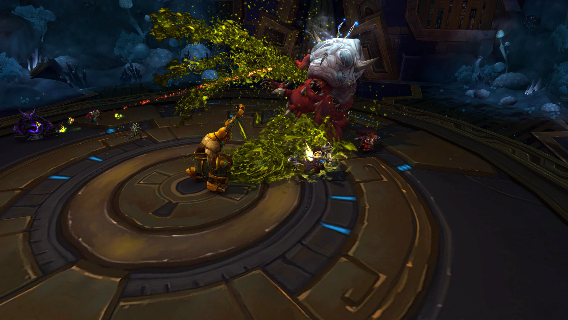 Gueule-de-pierre l'infesté est un crogg des tréfonds Putrides qui appelle des tiques de sang et des larves dans l'arène. Les techniques du boss expulsent plusieurs larves de tiques de sang dans un cône devant le lanceur de sort. Ces larves se transforment en tique de sang au bout de quelques secondes tant qu'elles ne sont pas écrasées en marchant dessus. Les tiques de sang deviennent dangereuses à cause de la déchirure de la chair de leurs crocs dentelés appliquant un effet de saignement cumulable. Les larves doivent être écrasées rapidement malgré la charge du boss qui repousse les cibles touchées ou son attaque en cône importante avec indigestion.