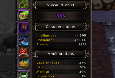 But 1 : Augmenter l'importance d'un niveau d'objet comme ligne directrice pour les améliorations d'objets. Plus qu'auparavant, les objets avec un large niveau d'objet ne sont pas un indicateur fiable sur une amélioration en raison de la variation de puissance aux statistiques secondaires sur un objet. L'augmentation du taux requis pour un pourcentage d'une statistique secondaire penche la balance vers un puissant objet avec d'importantes statistiques primaires. Nous sommes bien d'accord avec des petites améliorations de niveau d'objet est un choix plus difficile, mais quelques spécialisations laissent de côté les objets avec 15+ de niveau d'objet en faveur de statistiques secondaires. Cela ne devrait pas être quelque chose que nous encourageons à faire (avec l'exception occasionnelle sur les anneaux et colliers), qui nous mène à notre second but.