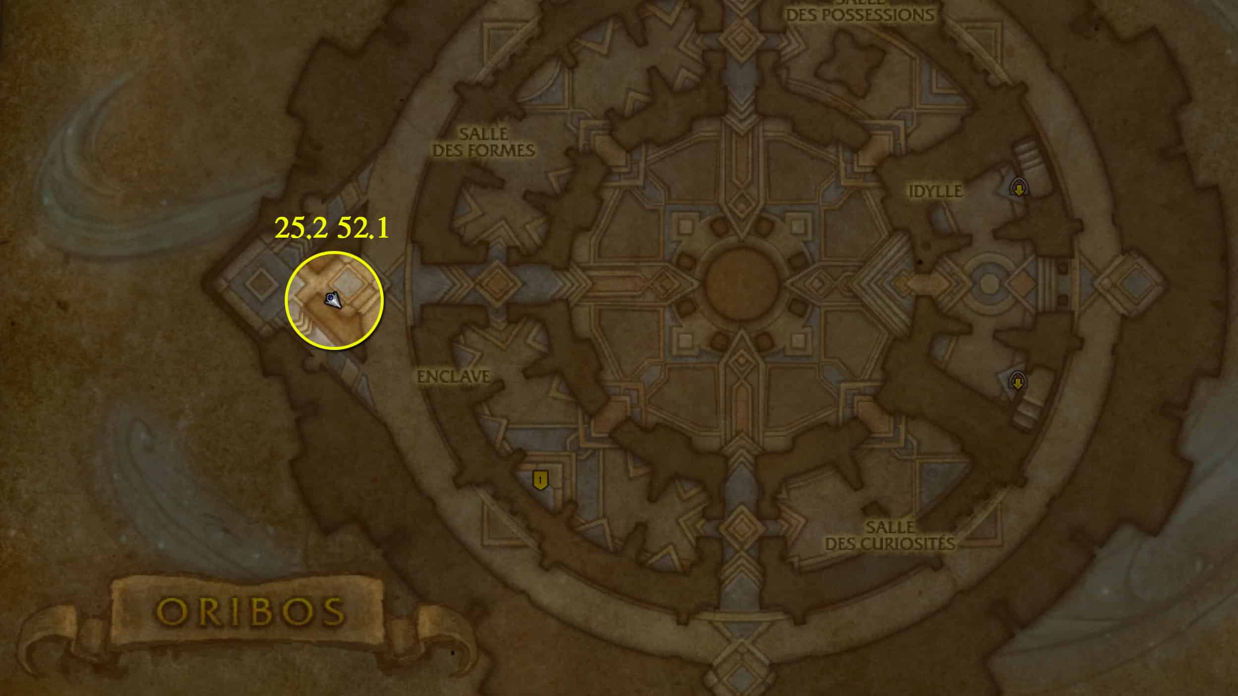 Une fois que vous êtes sur l'anneau externe de la cité sanctuaire à Oribos dans l'Ombreterre, le périple commence auprès de la dirigeante de l'ordre de Paladin Elfe de sang. Dame Liadrin, située aux coordonnées