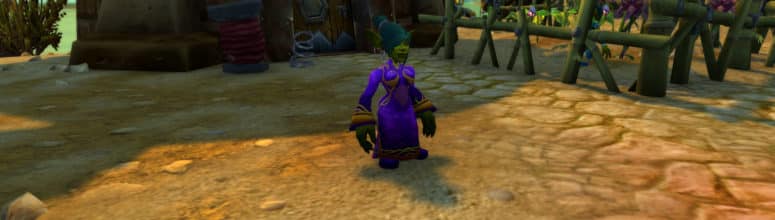 Pour obtenir cette armure ancestrale, le périple commence devant l'ambassade d'Orgrimmar pour rencontrer Izzy à bord d'un triklomoteur qui propose la quête