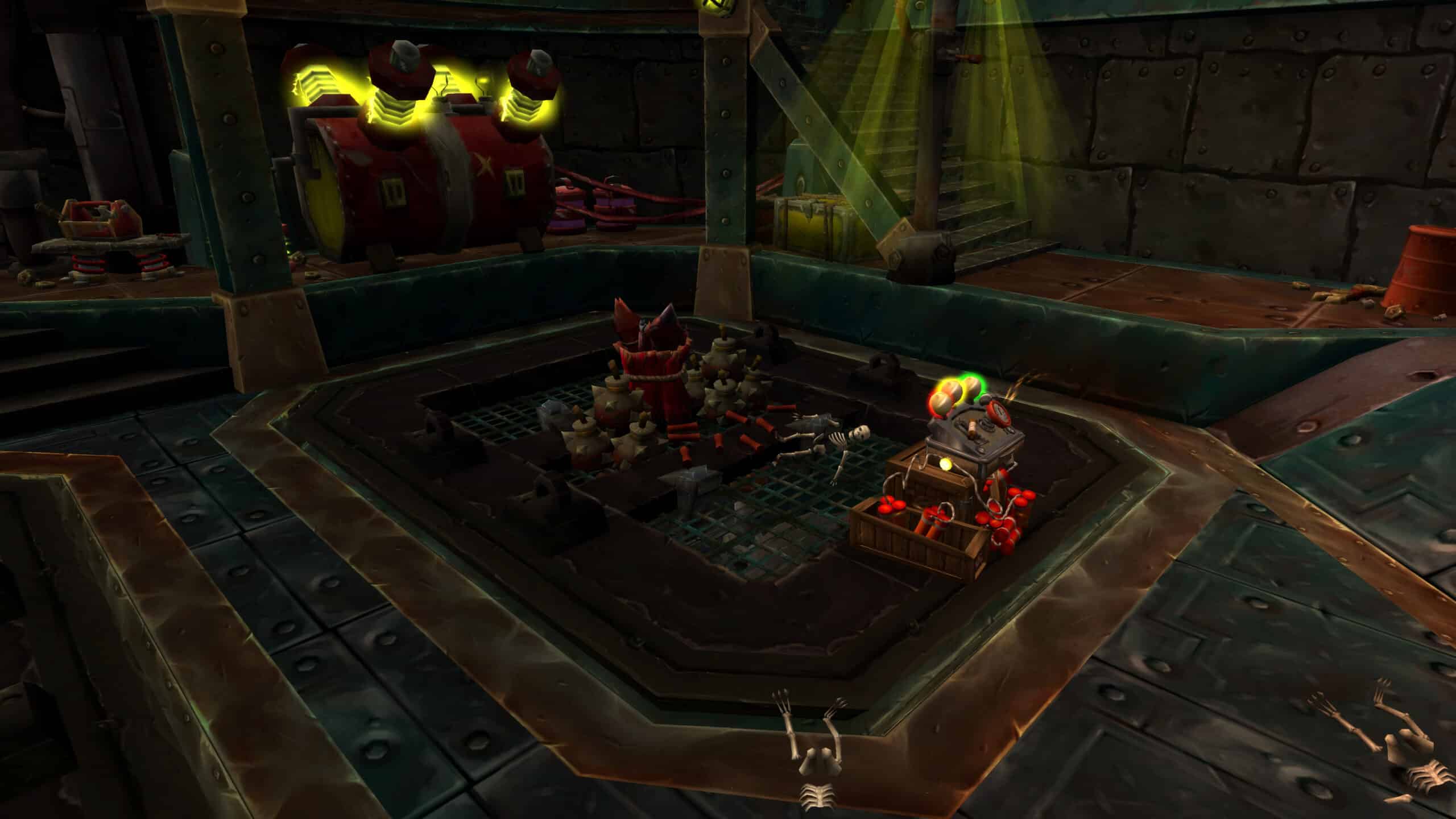 Une fois que vous êtes dans l'atelier d'Hobart Martelutte, le prince marchand Gallywix intervient pour lui rappeler qu'il détient les droits sur toutes les inventions à perpétuité. Cependant, Hobart n'est pas d'accord avec ses propos puisqu'il indique qu'il n'a jamais signé de contrat officiel avec lui. Après cette discussion terminée, Hobart Martelutte travaille sur le projet d'une armure personnelle X-52, un projet qui va révolutionner l'industrie militaire gobeline. Afin de mener ce projet au terme, le gobelin a besoin de procéder à une série de trois tests pour tester la résistance de l'armure au gel, au feu et à l'explosion :