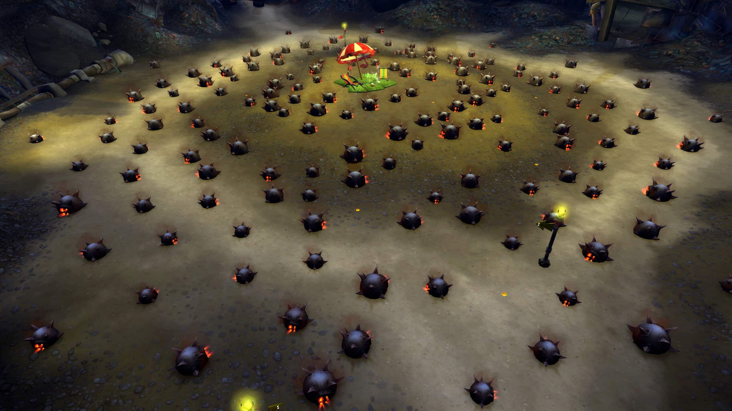 - Flammes détonantes : évitez de rester sur la surface grillagée pour ne pas subir les dégâts périodiques de feu.
