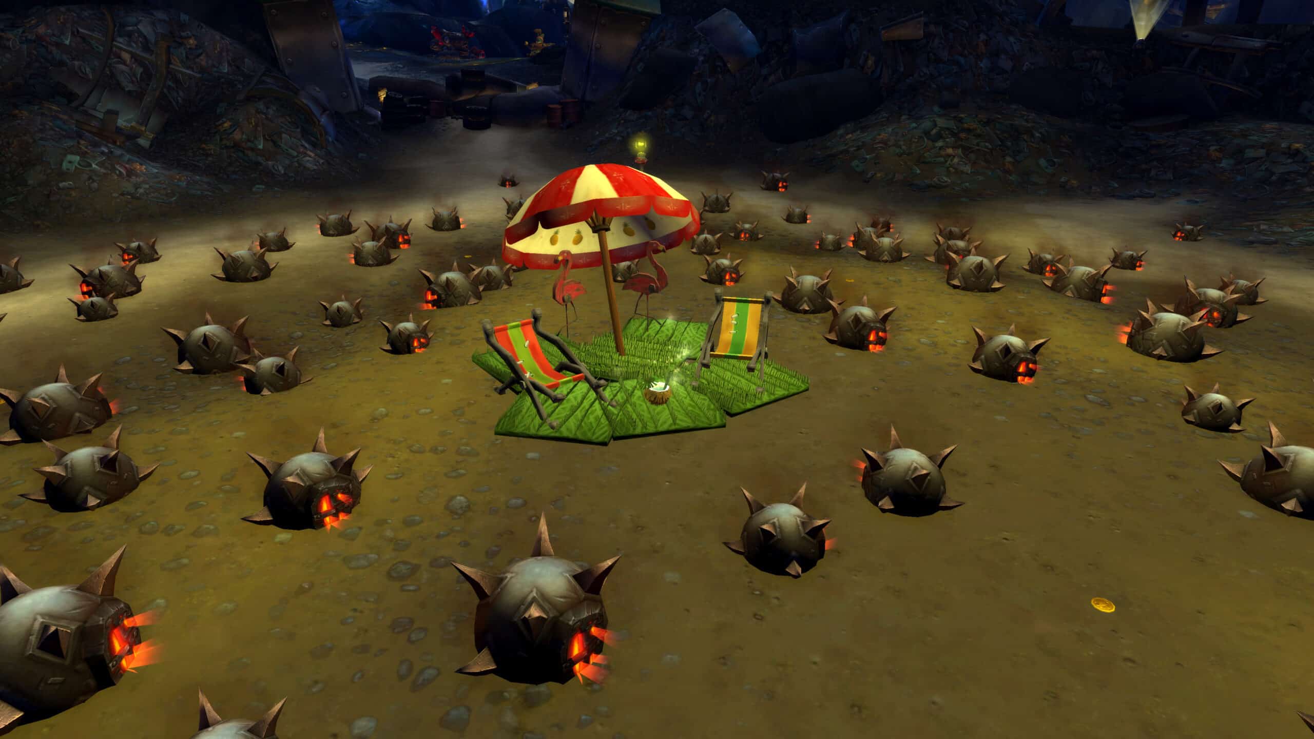 Une fois que vous avez réussi à triompher de Mécanolaborantine, une épreuve finale vous attend pour récupérer une Boisson rafraîchissante à la noix de coco. Cependant, cette boisson est située au milieu d'un champ de mines pour survivre aux explosions lorsque vous passez à proximité. Pendant cette expérience finale, l'armure X-52 vous protège partiellement contre les dégâts et l'effet de repoussement. Il suffit d'emprunter le chemin indiqué par des petites pièces d'or sur le sol.