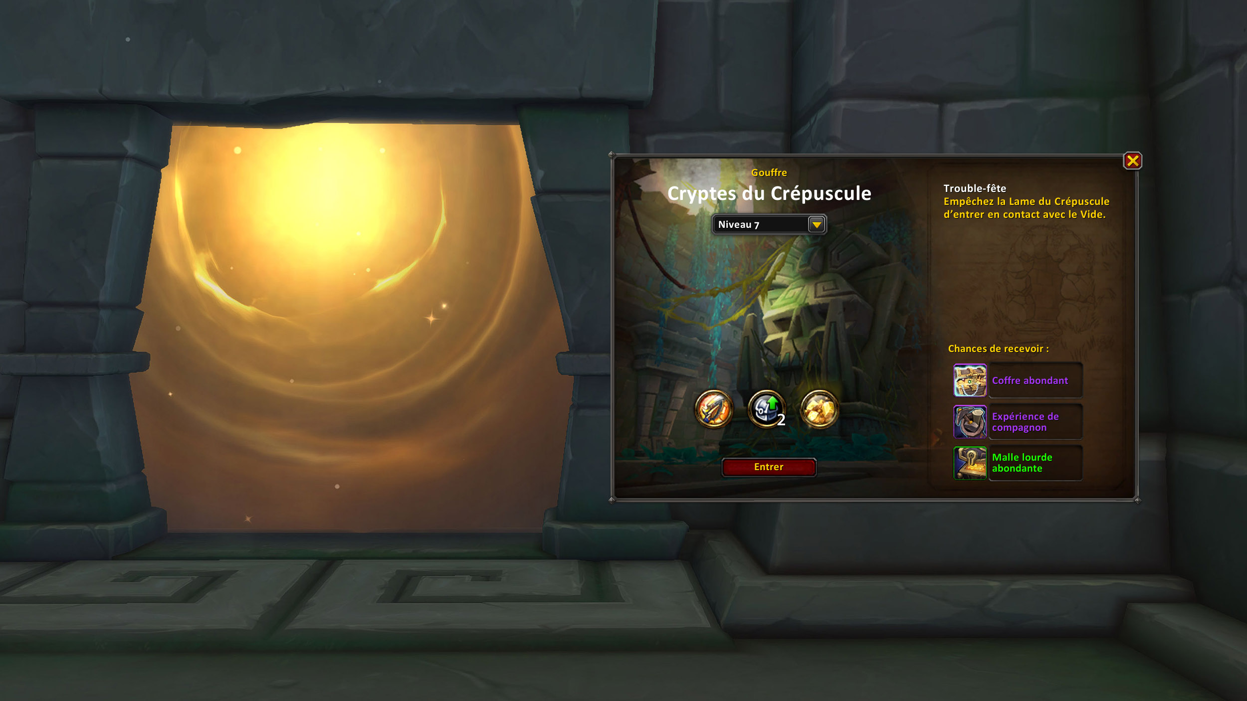- Le niveau des gouffres est bridé entre 1 à 3 tant que vous n'êtes pas au niveau 90 et terminé la campagne principale.