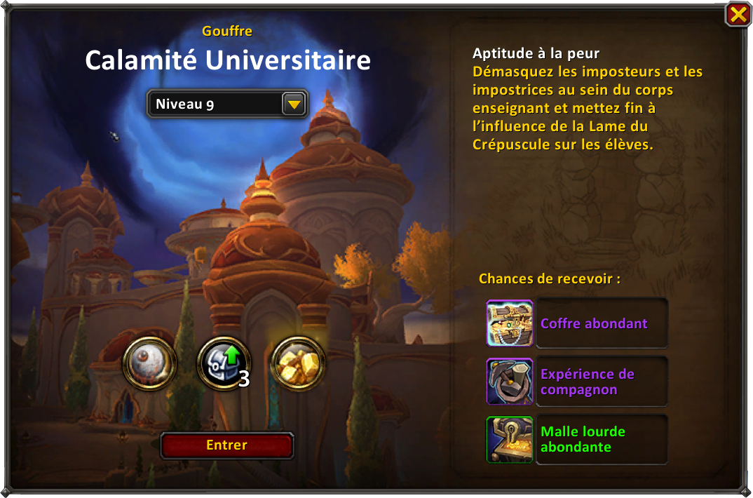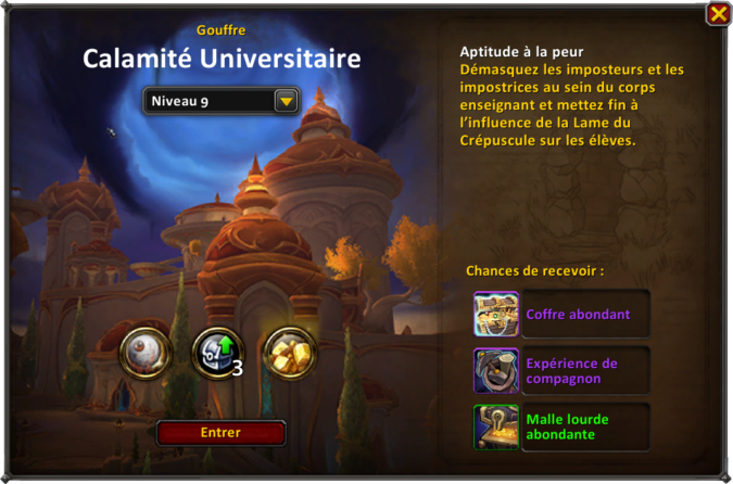 | Palier 3 | Recommandé avec 200 niveaux d'objet. | Niveau 90 uniquement. |