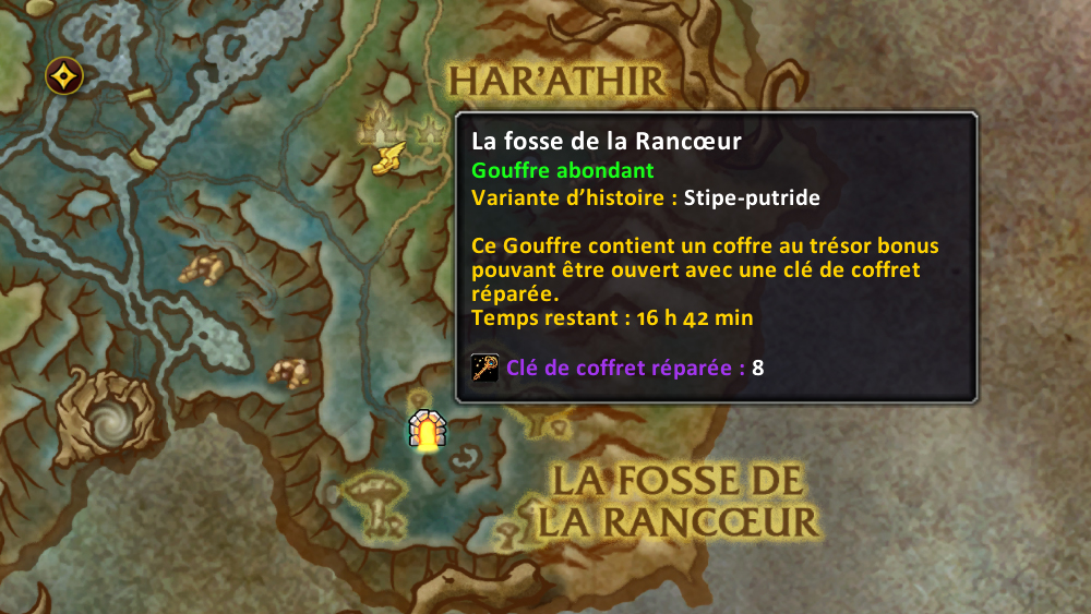 La carte du monde de Khaz Algar et Quel'Thalas affiche jusqu'à 4 gouffres abondants avec une icône remplacée :