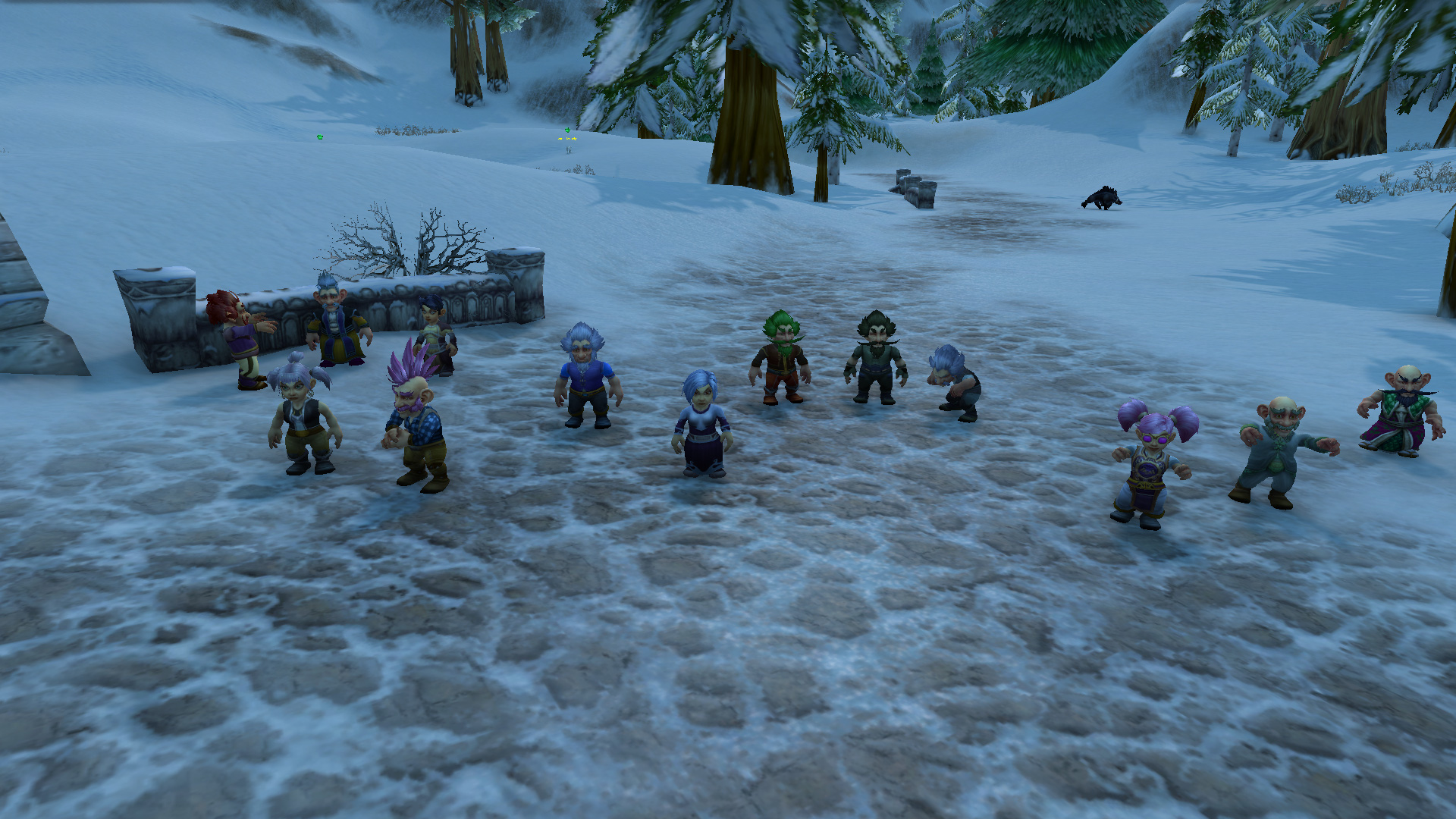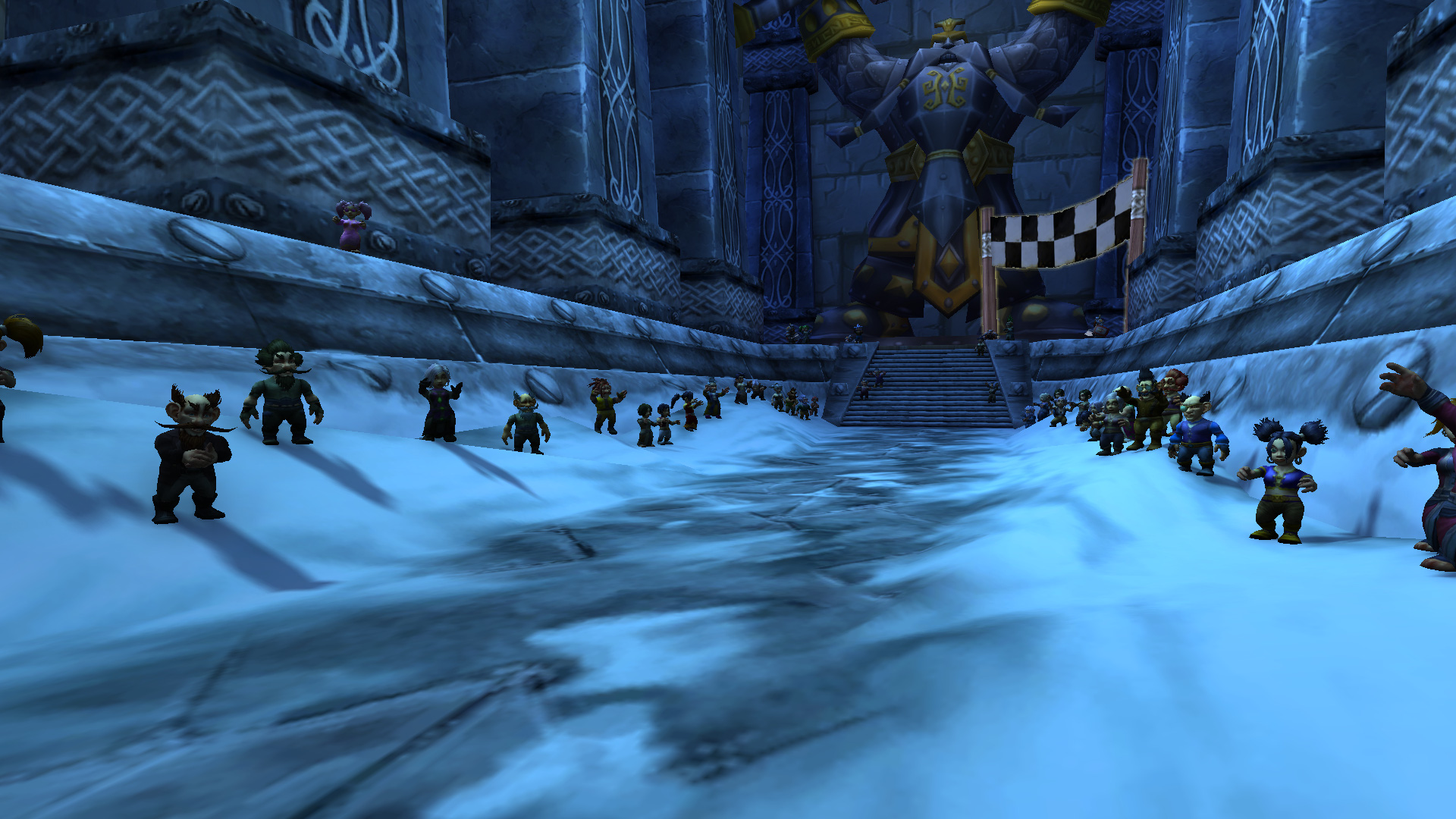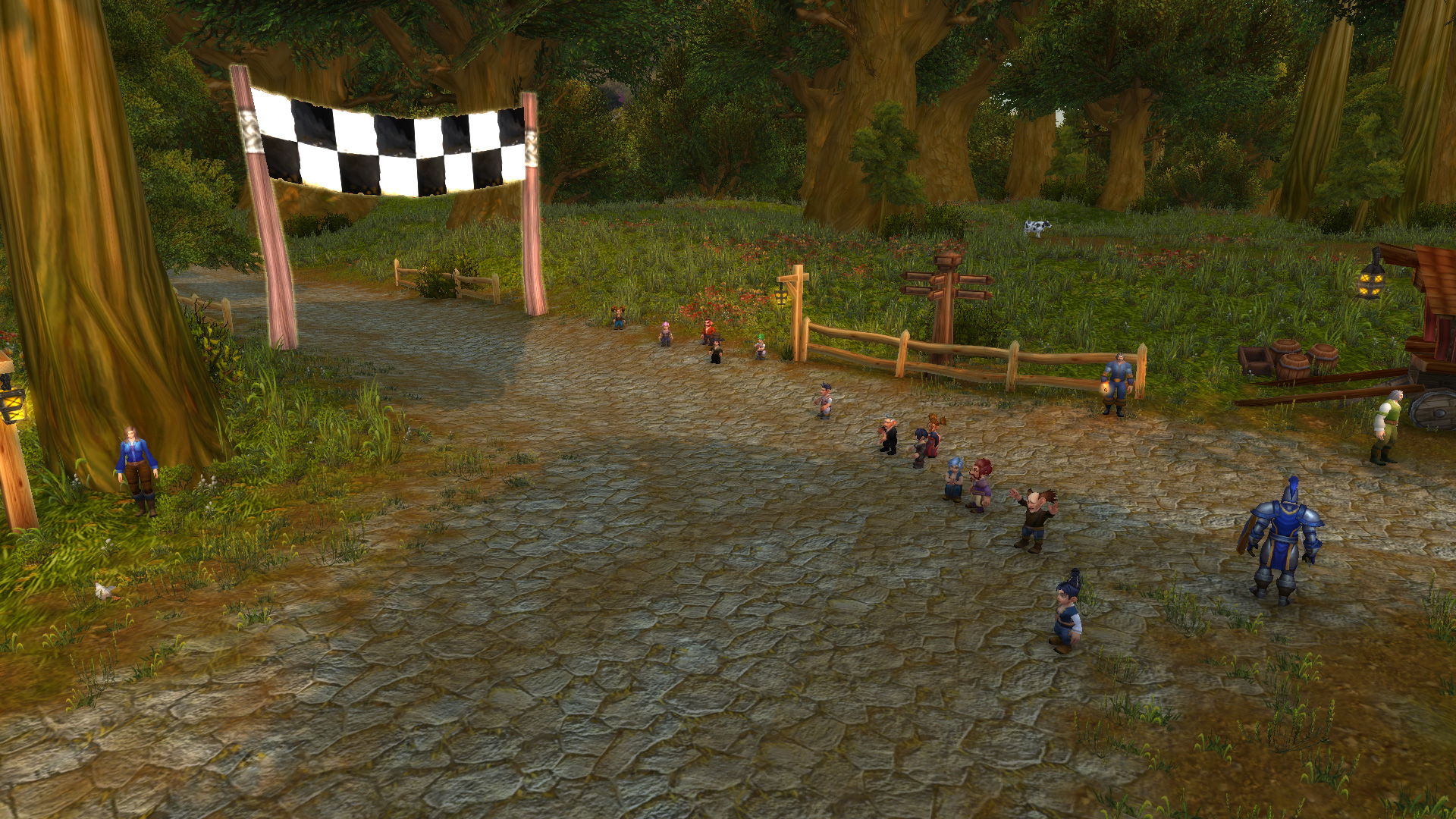 Lorsque vous passez les différents points de contrôle, des gnomes en folie vous acclament pour vous encourager à poursuivre votre grande course. Les gnomes réputés d'Azeroth se mêlent à la mini-fête comme Milhouse Tempête-de-mana (Arcatraz), Gelbin Mekkatorke (Chef), Addie Pétibourbe (Chasseur), Wilfred Flopboum spectral (Démoniste), Vaillant ou même la créatrice de l'événement à Hurlevent.
